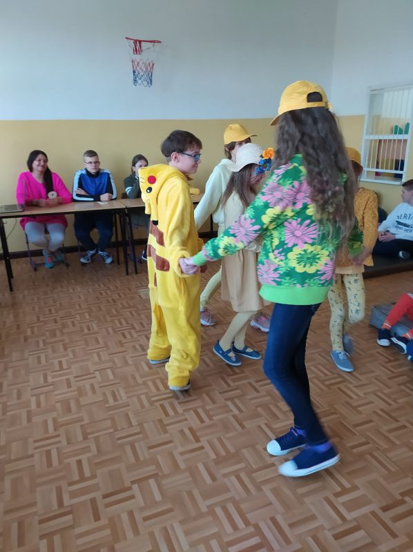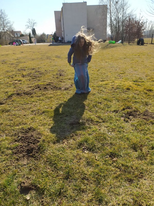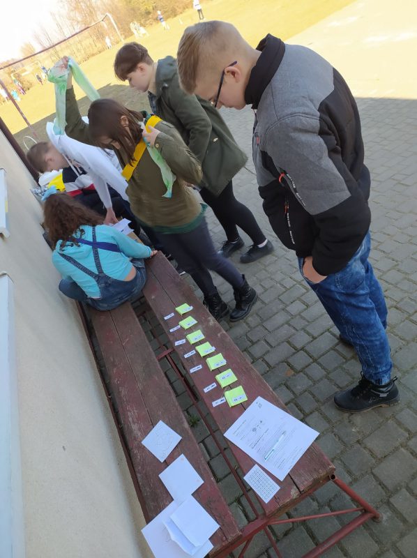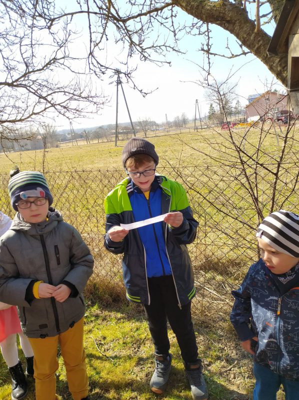 Uczniowie bawili się świetnie na rewii mody, którą zaprezentowali chętni uczniowie. Następnie wszyscy udali się na boisko szkolne. Tam starsi uczniowie zmagali się z kodowaniem wiosennych tajemnic, zaś młodsi szukali ukrytych wiosennych zagadek! Pogoda dopisała, było ciepło i słonecznie!