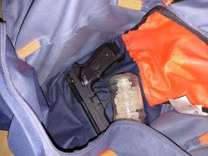 Mężczyzna miał przy sobie 150 gramów extazy, sól kokainową oraz broń. W toku przeszukania pojazdu jak i garażu na terenie rodzinnej posesji 29-latka policjanci zabezpieczyli kilka beczek z zawartością sypkich substancji służących najprawdopodobniej do produkcji środków odurzających, menzurki, wagę i innego rodzaju przedmioty służące do wytwarzania narkotyków. 29-latek przyznał, że ujawnione przyrządy produkcyjne, jak i substancje to jego własność.