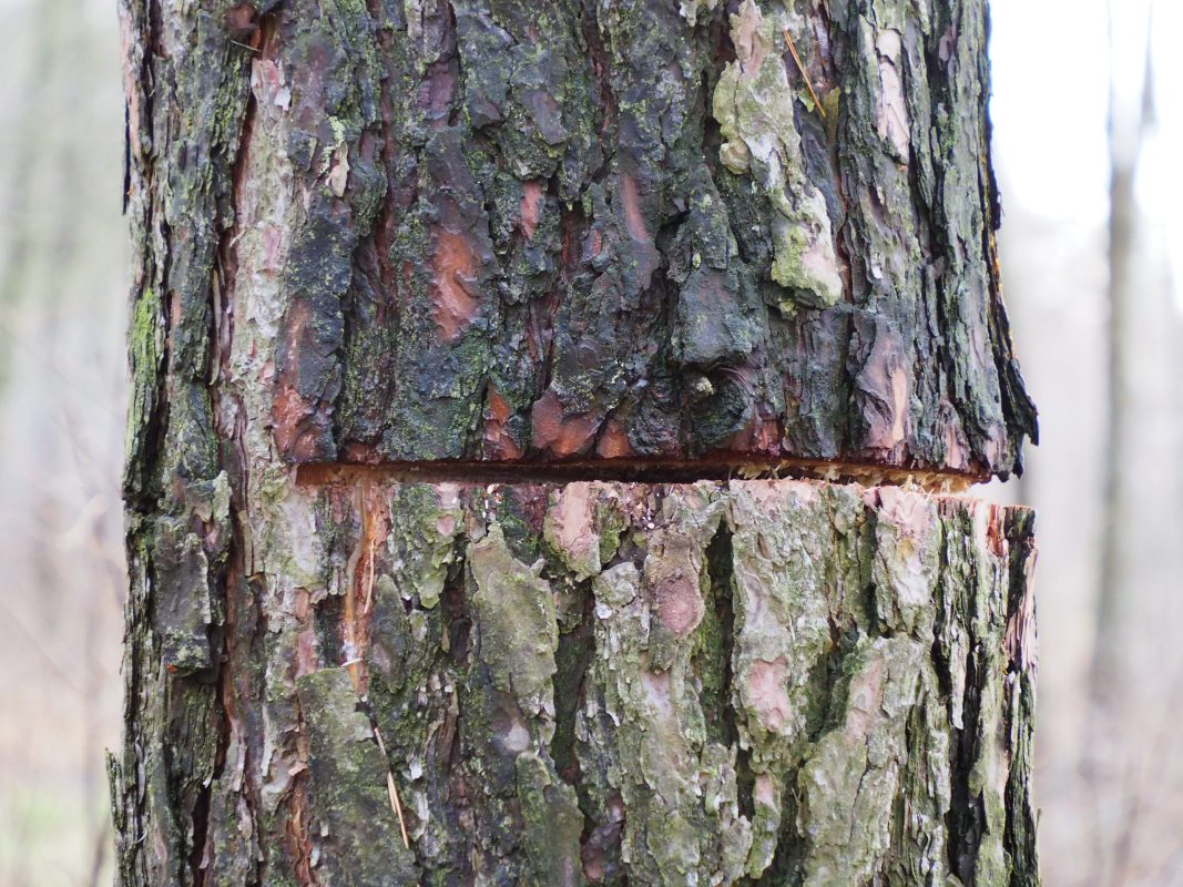 Około 60 uszkodzonych drzew na swojej działce leśnej zauważył mieszkaniec Rembielina w gminie Chorzele.  Drzewostan – głownie brzozy i sosny – został ponacinany przez nieznanego sprawcę do połowy pnia na wysokości 130 centymetrów. Właściciel lasu ma swoje podejrzenia, co do osoby, która mogła zniszczyć jego mienie, a sprawę zgłosił już do organów ścigania.