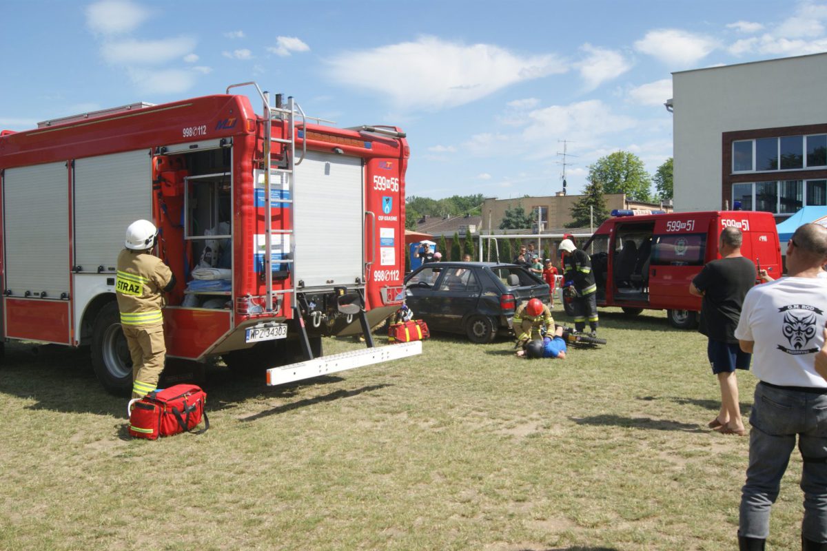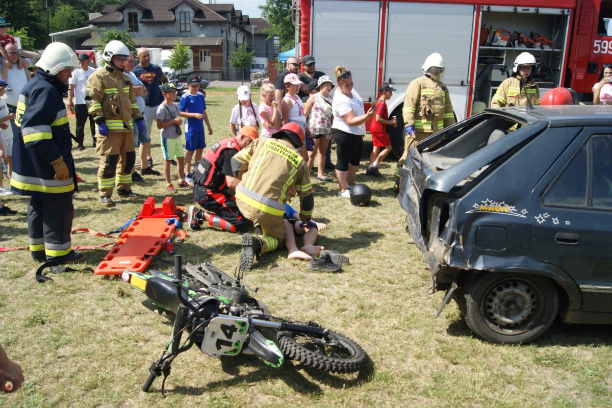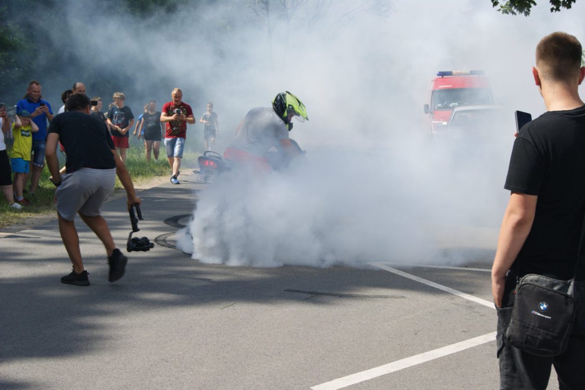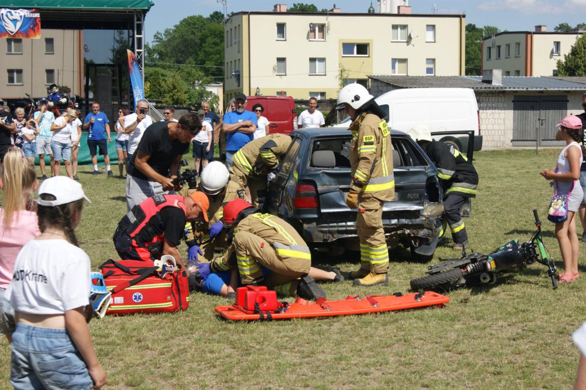 Nie zabrakło również konkursów motocyklowych, strefy gastronomicznej i wspaniałej oprawy muzycznej. Symulacja wypadku drogowego z udziałem motocyklisty.