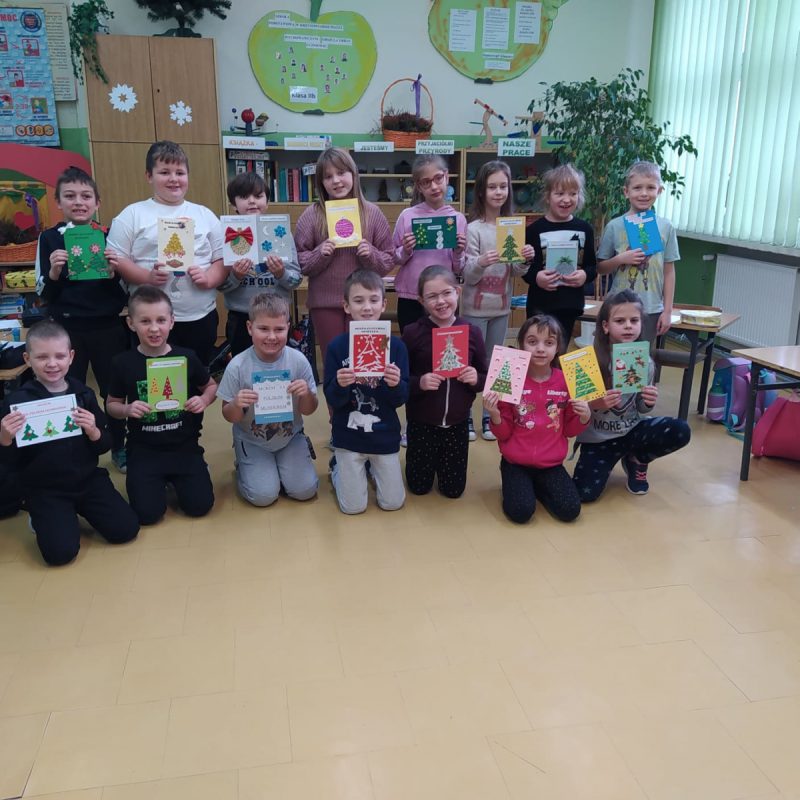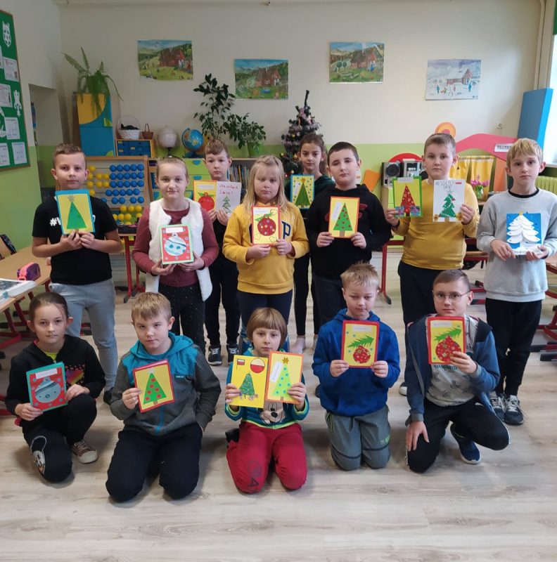 Uczniowie z klas I-III z wielkim zaangażowanie przystąpili do wykonania kartek okolicznościowych dla naszych Obrońców. Przez kilka dni pod czujnym okiem swoich wychowawczyń tworzyli prace plastyczne prześcigając się w pomysłach. Wielu uczniów zdecydowało się na kartki świąteczne, w związku ze zbliżającymi się świętami Bożego Narodzenia, ale byli i tacy, którzy przedstawili pracę polskiego żołnierza. Pisząc życzenia wyrażali swoje uznanie i podziw dla ciężkiej i niebezpiecznej służby jaką jest ochrona granicy polsko-białoruskiej. Wszystkich żołnierzy, funkcjonariuszy Policji i Straży Granicznej zapewniamy o naszym wsparciu, jesteśmy „Murem za polskim mundurem”. Będziemy o Was zawsze pamiętać oraz nauczymy tego następne pokolenia.