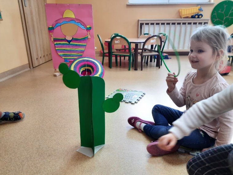 Zabawa w podróż do Meksyku pozwoliła przedszkolakom na odgrywanie nowych ról, wizualizację siebie jako człowieka w odmiennym stroju z innymi zwyczajami. W ramach zajęć dzieci dowiedziały się gdzie znajduje się ten piękny kraj, poznały jego kulturę oraz owoce i warzywa, które trafiły do naszego kraju z ziemi Azteków. Wielką atrakcją było rozbijanie piniaty. Podróż do Meksyku dostarczył dzieciom wiele radości i uśmiechu.