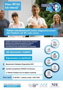 Eksperci podkreślają, że niedostatecznie dbamy o swoje zdrowie, co wyraża się m.in. niewykonywaniem badań diagnostycznych. Ten problem pogłębiła pandemia koronawirusa. Wielu z nas odłożyło wizyty w gabinetach lekarskich i badania profilaktyczne. Teraz, gdy sytuacja epidemiologiczna uległa zdecydowanej poprawie najwyższy czas pomyśleć o swoim zdrowiu i profilaktyce. Jedną z inicjatyw, która ma w tym pomóc, jest uruchomiony 1 lipca 2021 r. rządowy program „Profilaktyka 40 PLUS”. Dzięki niemu każdy Polak po 40. roku życia może bezpłatnie wykonać pakiet badań diagnostycznych.