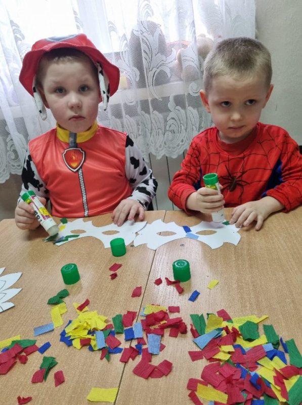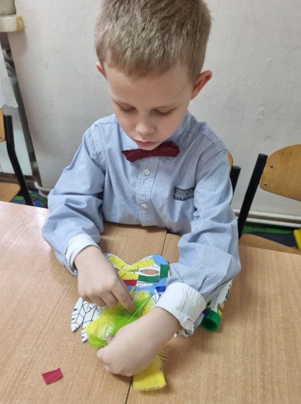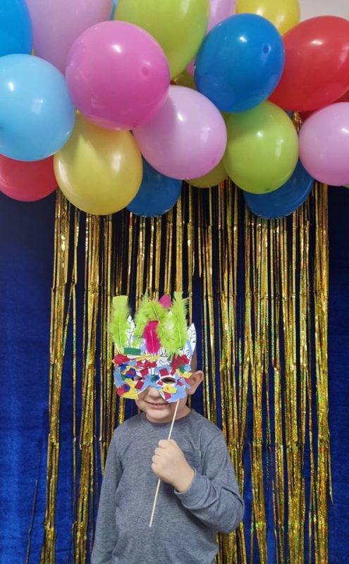 Dzieci świetnie się bawiły uczestnicząc wspólnie w zabawach i pląsach. W sali w czasie tańców było bardzo kolorowo, wszyscy bawili się wesoło, uśmiech nie znikał z twarzy mimo chwilowego zmęczenia. Przedszkolaki wykonały również przepiękne maski karnawałowe, w których chętnie pozowały do zdjęć.