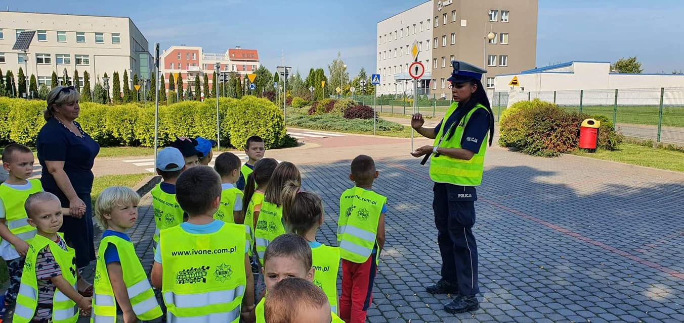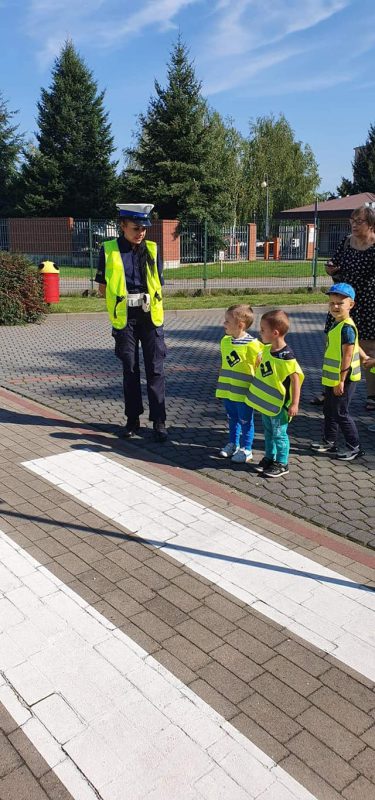 Policjantki z Wydziału Ruchu Drogowego rozmawiały na temat bezpiecznego poruszania się po drogach, jak ważne jest korzystanie z przejść dla pieszych. Na Miasteczku Ruchu Drogowego dzieciaki mogły poćwiczyć przechodzenie przez pasy. Porozmawiano na temat jazdy samochodem w fotelikach ochronnych oraz jaka rolę odgrywają pasy bezpieczeństwa.