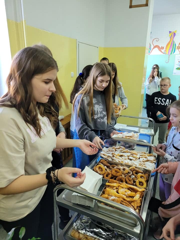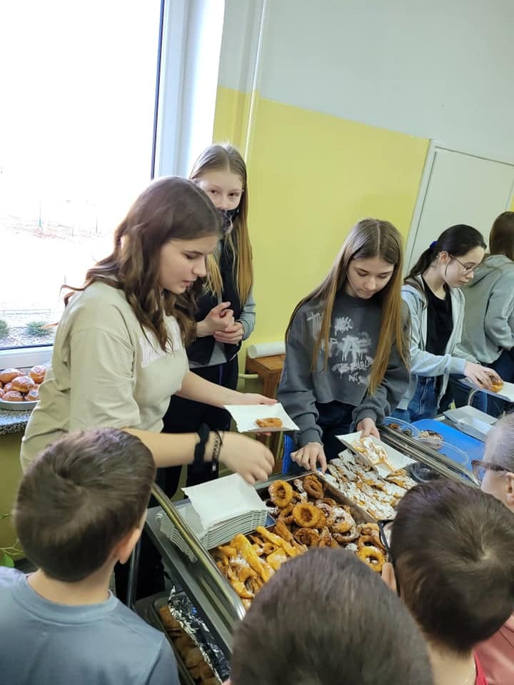 Tłusty Czwartek rozpoczyna okres ostatków i zwiastuje zakończenie karnawału. Jest to doskonała okazja, aby skosztować tradycyjnych przysmaków. Domowe wypieki, pączki, faworki, oponki królowały na charytatywnym kiermaszu w Szkole Podstawowej im. Marszałka Józefa Piłsudskiego. Nie tylko łasuchy skusiły się na domowe wypieki.