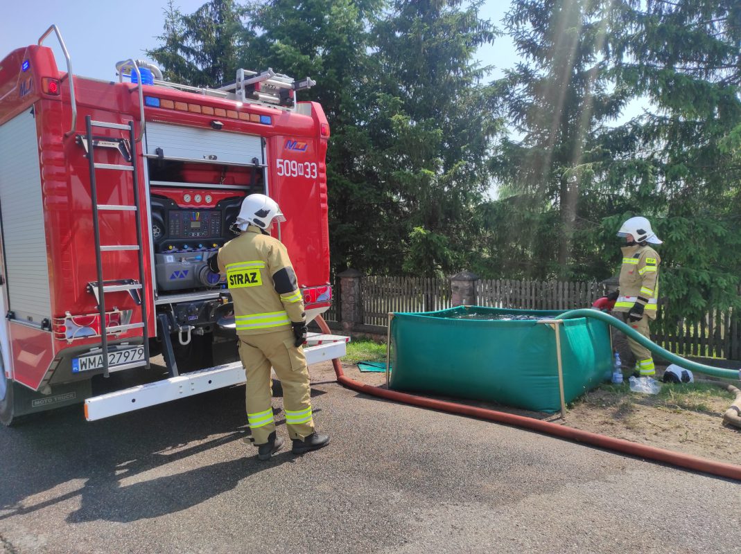 w pobliżu drogi pożarowej, do którego dowożona będzie woda z punktu czerpania wody;