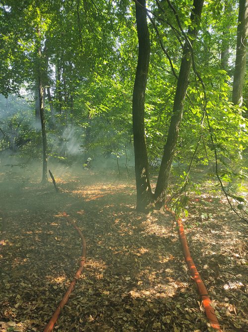 – miejsce pożarzyska zostaje zabezpieczone a strażacy zwijają sprzęt i przekazują teren pożarzyska pod kontrolę służby leśnej.