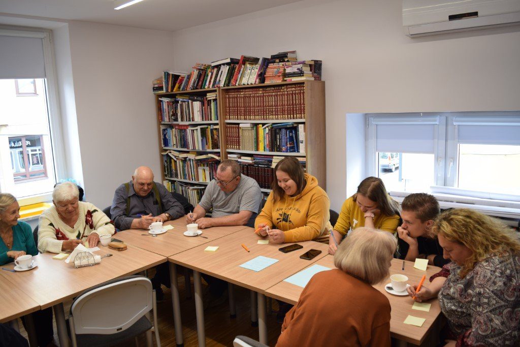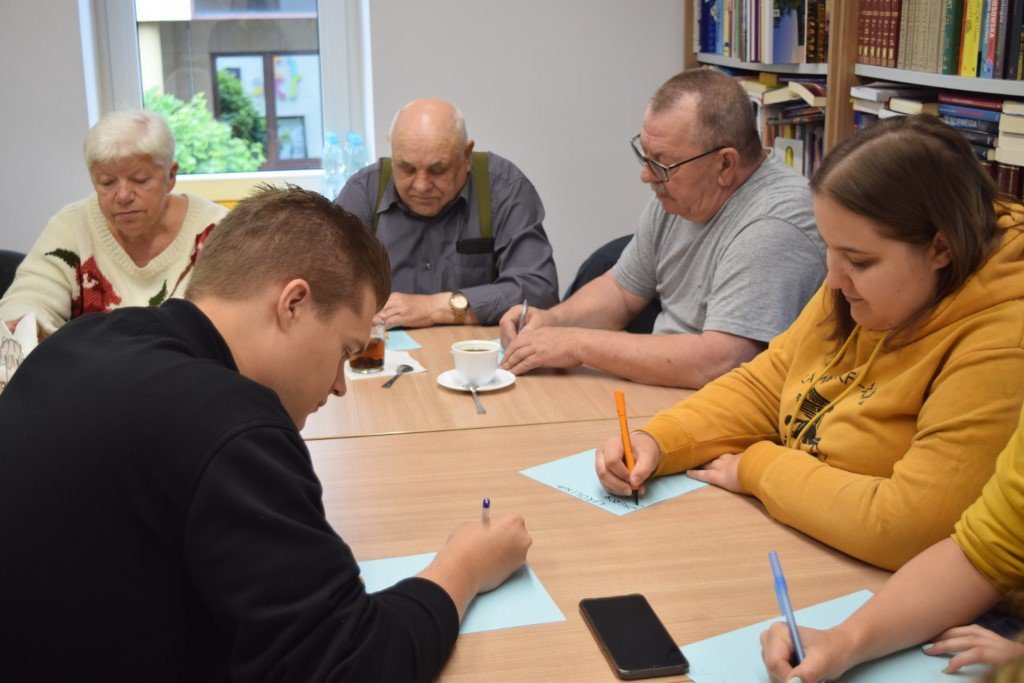 Druga część spotkania poświęcona była pracy w grupach, z rezultatami których zapoznaliśmy się w ramach podsumowania. Spotkanie to miało na celu zarówno integrację międzypokoleniową jak również poznanie potrzeb obu stron. Spotkanie to było pierwszym krokiem do wypracowania wspólnej inicjatywy, która będzie realizowana we współpracy seniorów z młodzieżą.