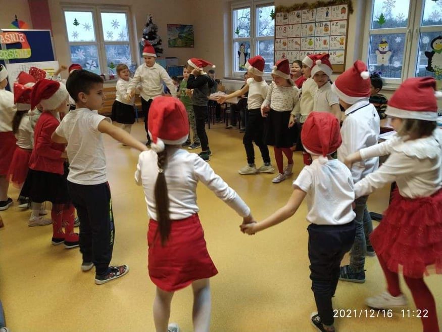 Na zakończenie konkursu czytelniczego ,uczniowie klasy pierwszej wprowadzili nas w świąteczny nastrój układem tanecznym do piosenki „Jingle bells”.