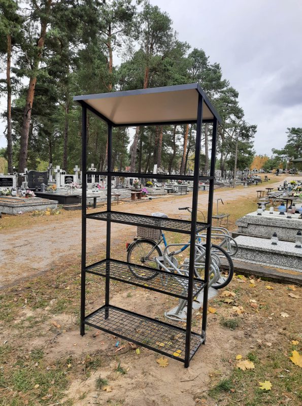Szklane „opakowanie” pozostawione przez kogoś innego będzie już na cmentarzu. Konstrukcje zostały sfinansowane w całości z Dietki Radnego. Koszt – 1️5️0️0️ zł za dwie sztuki. Ale jeśli pomysł się sprawdzi, chętnie zainwestuję w kolejne podobne stojaki.