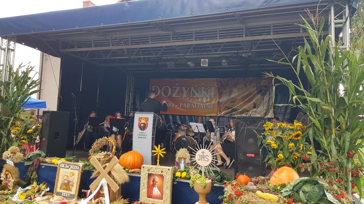 Po zakończeniu liturgii korowód dożynkowy przy akompaniamencie Młodzieżowej Orkiestry Dętej z Czernic Borowych pod batutą Macieja Kowalskiego przeszedł na plac przy plebanii, gdzie odbyła się dalsza część uroczystości.