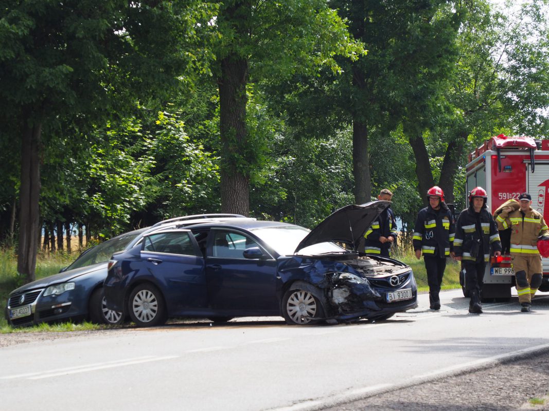 Siła uderzenia spowodowała, że pojazd volkswagen uderzył w poprzedzający pojazd marki Seat Toledo, którym kierował 43 letni mieszkaniec pow. przasnyskiego. Z miejsca zdarzenia z obrażeniami ciała karetką pogotowia do przasnyskiego szpitala przewieziono 9 letnią pasażerkę volkswagena . Badanie stanu trzeźwości kierujących wykazało, że w chwili zdarzenia byli trzeźwi.
