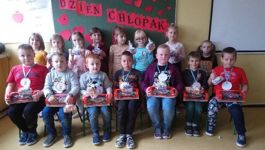 Z tej okazji nasze dziewczynki przygotowały dla chłopców miłe niespodzianki, m.in kolorowe medale, dyplomy oraz ciekawe upominki. Nie zabrakło też słodkości dla wszystkich dzieci Z każdej sali dochodziły dźwięki muzyki, słychać było śpiew i wesołe sto lat. Super zabawa trwała przez cały dzień a dzieci z uśmiechem na twarzy i zadowolone wracały do domów. Był to dzień, pełen wrażeń, atrakcji i dobrej zabawy.
