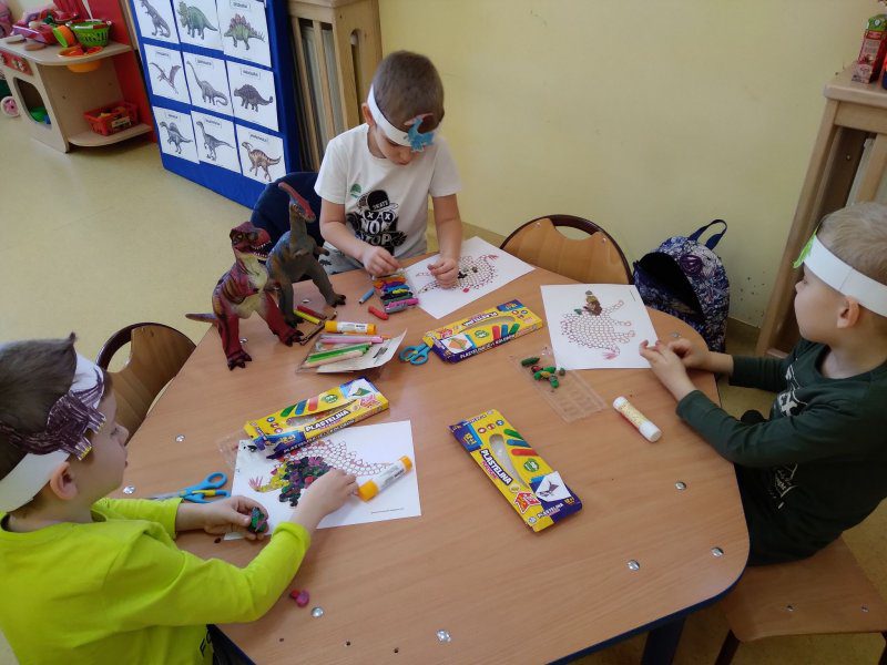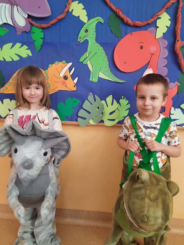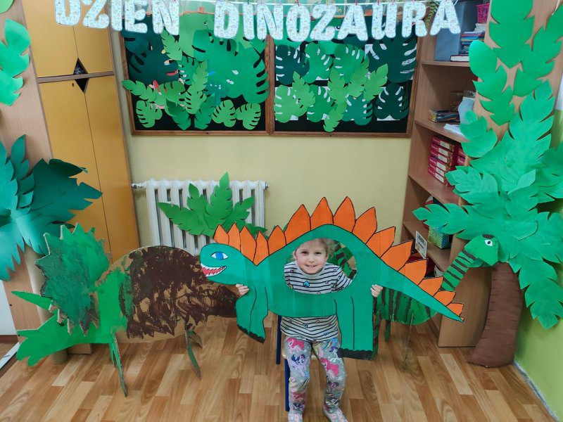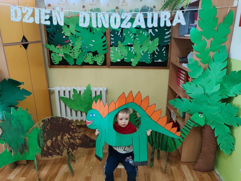 Przedszkolaki udały się w podróż do prehistorycznych czasów. Poprzez opowiadania, ciekawostki, książki z obrazkami przedstawiającymi dinozaury przedszkolaki dowiedziały się jak wyglądały, czym się żywiły oraz jak wyginęły. Każda z pań przygotowała dla swoich dzieci zagadki, zabawy matematyczne, ruchowo – naśladowcze, filmy edukacyjne. Przedszkolaki zobaczyły dinozaura „wylęgającego” się z jaja. Dzieci wykonały także prace plastyczne, wykorzystując przy tym różne materiały. Dzień Dinozaura przeniósł nas w odległy, fascynujący i wciąż tajemniczy świat.