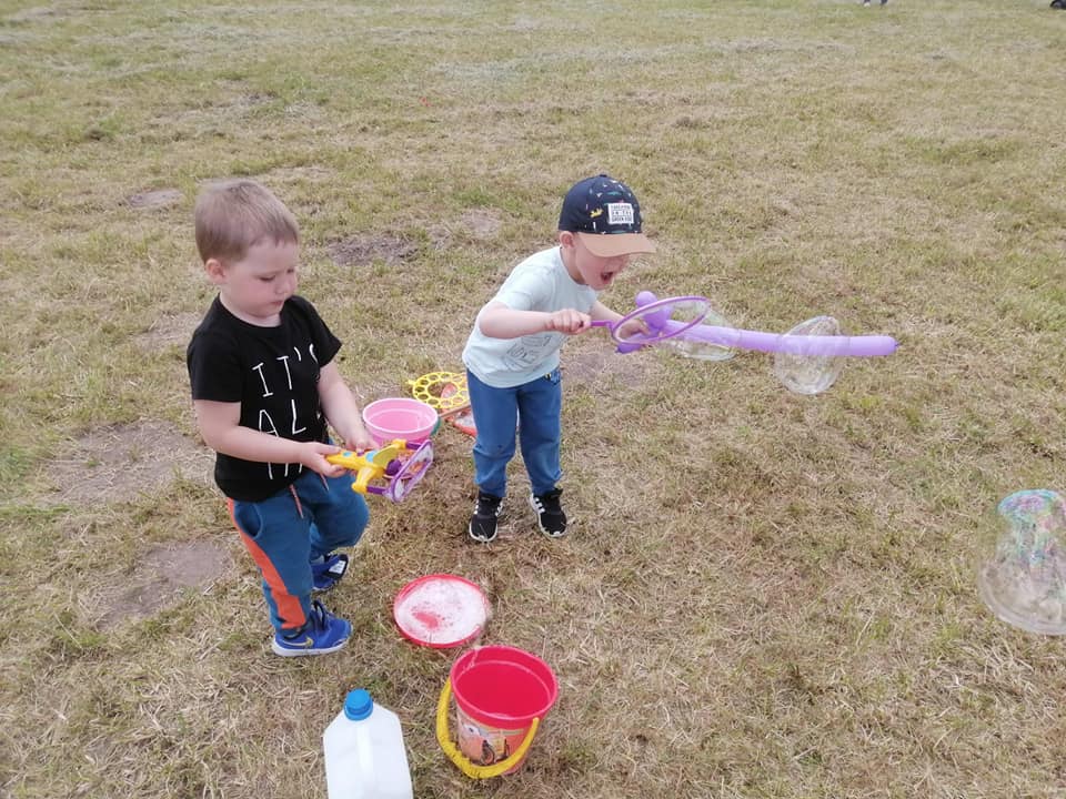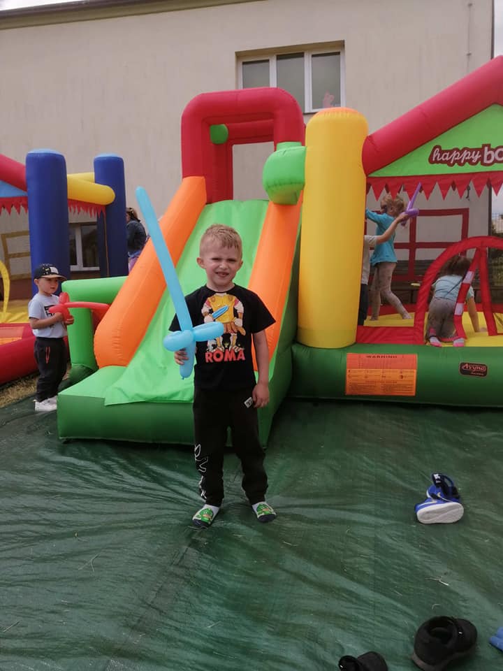 Na przedszkolaków czekało wiele atrakcji, były konkurencje sportowe, dmuchane place zabaw, malowanie twarzy, duże bańki mydlane, balony do modelowania.