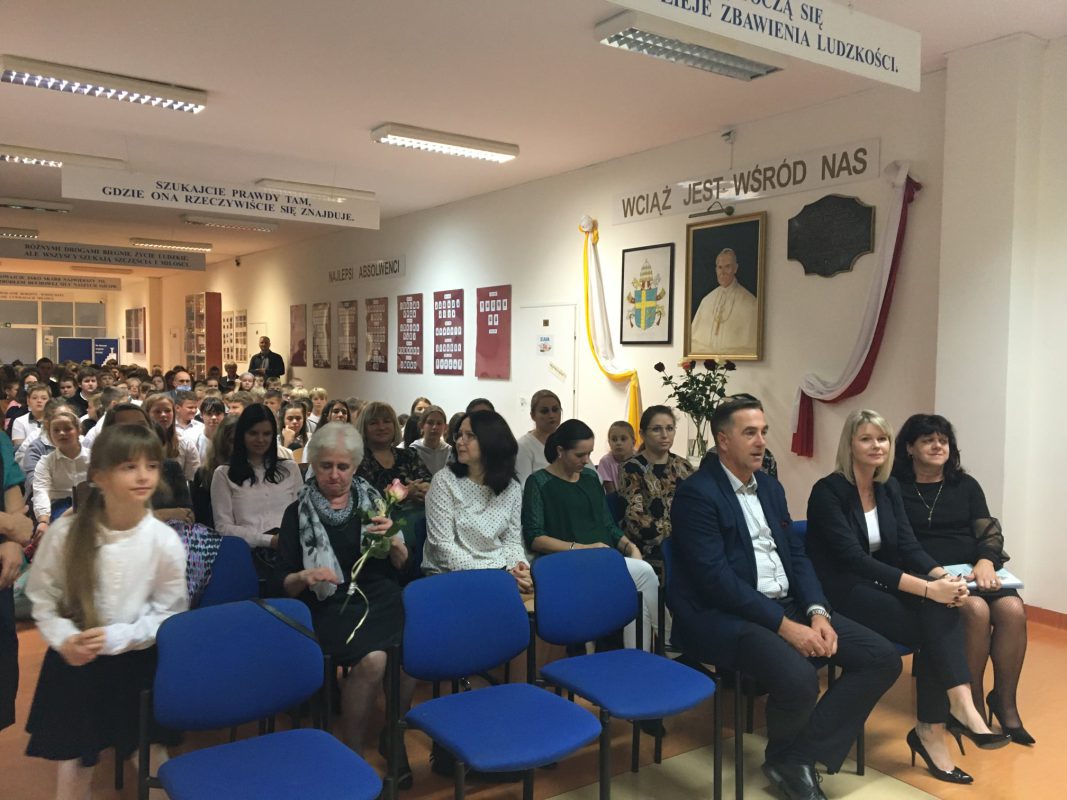 Padło wiele słów pięknych życzeń. Pani Dyrektor Hanna Wilga w ciepłych słowach podziękowała wszystkim za wzorowe pełnienie obowiązków zawodowych i życzyła satysfakcji z pracy pedagogicznej. Nie zabrakło też kwiatów, nagród, podziękowań, dyplomów i pysznego tortu od rodziców.