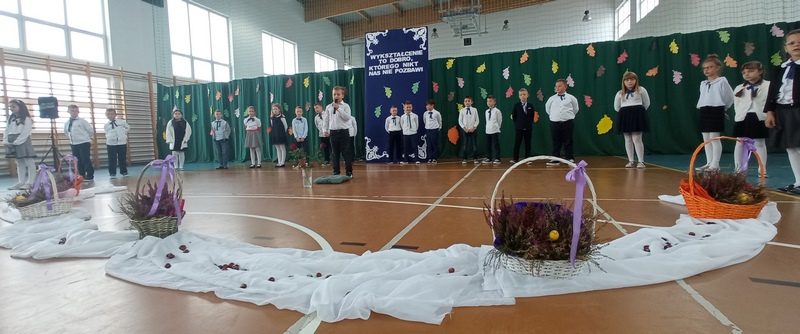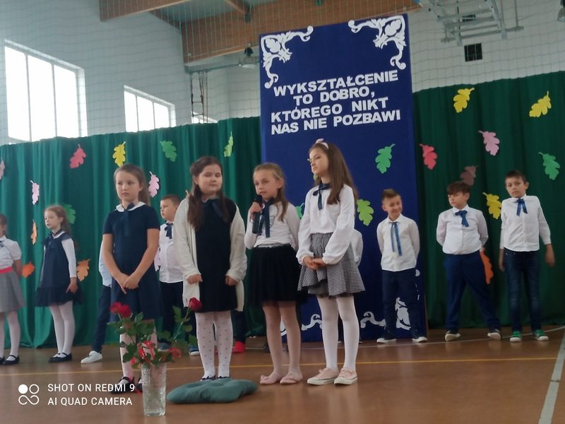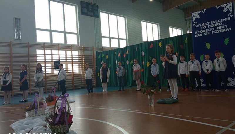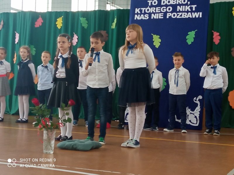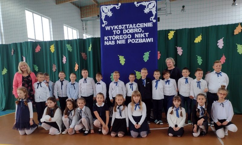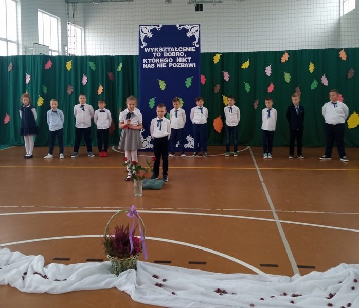 Część artystyczną przygotowali uczniowie kl. II a i II b pod kierunkiem p. Urszuli Urban i p. Aliny Jelińskiej, uroczystość uświetnił p. Sylwester Stolarczyk, który zaangażował się w oprawę muzyczną.