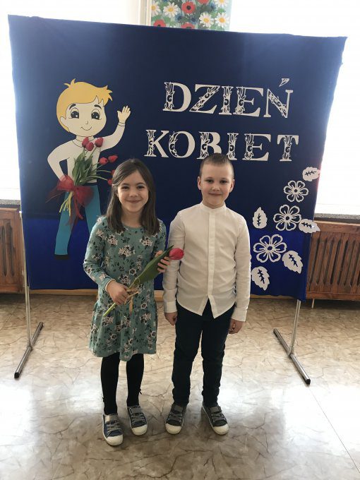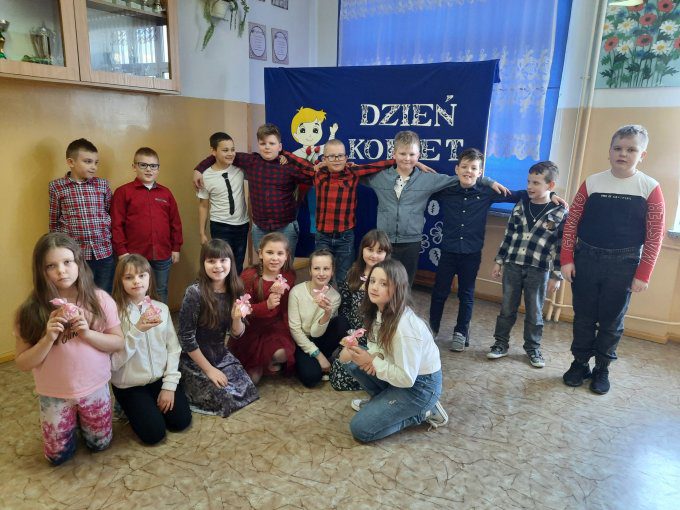 W tym dniu pamiętał również o nas Ksiądz proboszcz Michał Gaszczyński, który wręczył wszystkim Paniom drobny upominek w postaci książeczki pt. „Listy od świętych na każdy dzień”. Tradycyjne Święto Kobiet w tym roku świętowaliśmy jednak nieco inaczej niż zwykle. Zamiast hucznych występów obchodziliśmy je uroczyście w swoich klasach. Chłopcy zachowali się jak prawdziwi dżentelmeni wręczając swoim wychowawczyniom i koleżankom kwiaty, drobne upominki oraz cukierki. Oczywiście były też życzenia i tradycyjne „Sto Lat”. W tym dniu było bardzo dużo radości, niespodzianek. Jedną z nich był wspólny poczęstunek w postaci pizzy. Koledzy zaprojektowali dla naszych małych dam stroje wyjściowe i opowiadali miłe rzeczy na temat wylosowanej przez siebie koleżanki. Było wiele ciekawych wspólnych zabaw. Dziewczynki nie kryły swojego zadowolenia. Te piękne chwile uwieczniliśmy wspólnymi zdjęciami.