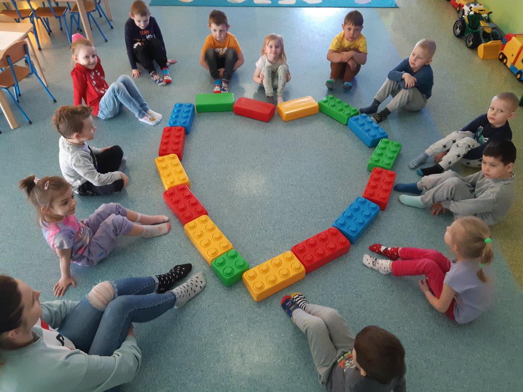 W tym dniu przedszkolaki brały również udział w zabawach, dzięki którym doskonaliły umiejętności społeczne oraz emocjonalne. Dzieci z grupy Pszczółki zrealizowały również przy okazji Dnia Kolorowej Skarpetki jedno z zadań innowacji pedagogicznej EKO Emocja – pacynka z kolorowej skarpetki.