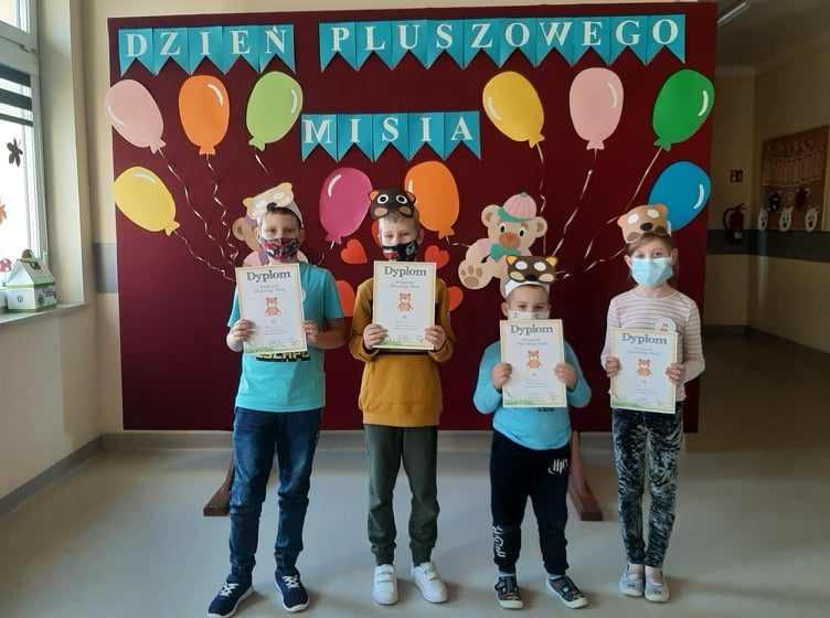 . Przedszkolaki i uczniowie z klas I – III obejrzały prezentację multimedialną na temat historii powstania pluszowego misia oraz obejrzały bajkę pt. Miś „Colargol”. Nie zabrakło zabaw ruchowych, zabaw plastycznych, wierszy, zagadek oraz piosenek o tematyce „misiowej” . Na zakończenie zabawy każda klasa otrzymała dyplom „Przyjaciela Misia”. Dzień był pełen uśmiechu i dobrej zabawy.
