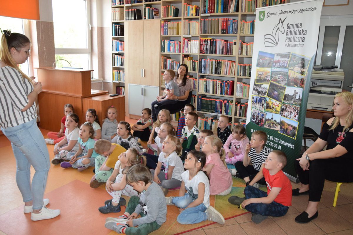 Tym razem Przedszkole Kraina Smerfów odwiedziło Gminną Bibliotekę Publiczną w Jednorożcu. Spotkanie miało na celu promocję czytelnictwa wśród najmłodszych, zapoznanie z rolą biblioteki w społeczeństwie, wpływu książki na rozwój intelektualny oraz pracą bibliotekarza.