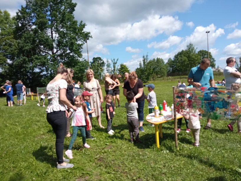 Dzieci pod kierunkiem nauczycielek: Elżbiety Żmijewskiej, Renaty Radomskiej, Marty Radziwonki i Anety Marchewki przygotowały szereg atrakcji, by jak najlepiej ugościć swoich Rodziców w tym wyjątkowym dniu. Słoneczna pogoda, świetne humory – to dzięki temu piknik rodzinny zyskał przyjemną oprawę, a zebrani goście z uśmiechem na twarzy, z wielką dumą, a nawet z łezką w oku oglądali występy swoich pociech. Dzieci dały wspaniały popis kreatywności oraz zdolności i umiejętności wokalnych, muzycznych i tanecznych. Spragnieni przeżyć artystycznych, Rodzice wysłuchali piosenek przygotowanych przez ich pociechy a Pani Dyrektor i Pan Dyrektor złożyli wszystkim najserdeczniejsze życzenia.