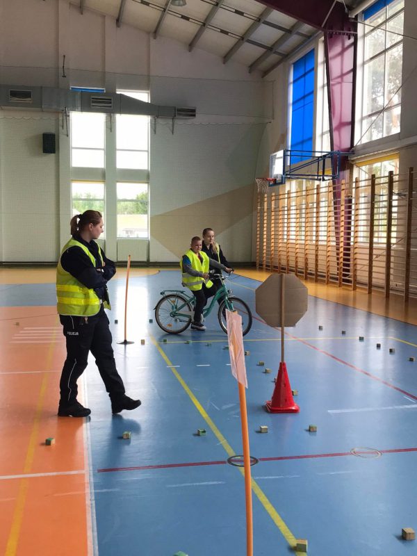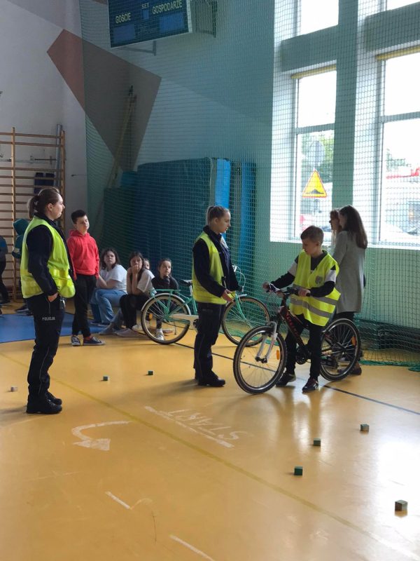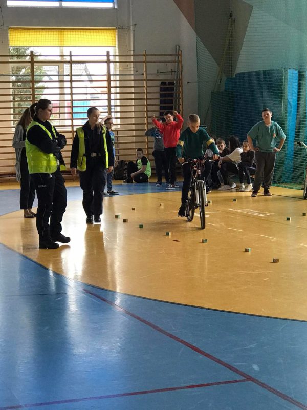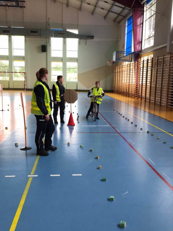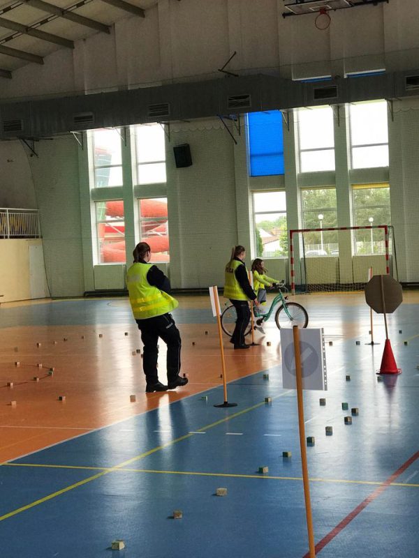 Wszyscy uczestnicy pod czujnym okiem pań policjantek z Wydziału Ruchu Drogowego w Przasnyszu pomyślnie zakończyli sprawdzian umiejętności jazdy na rowerze.