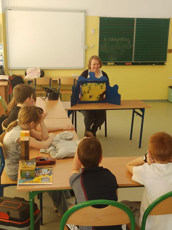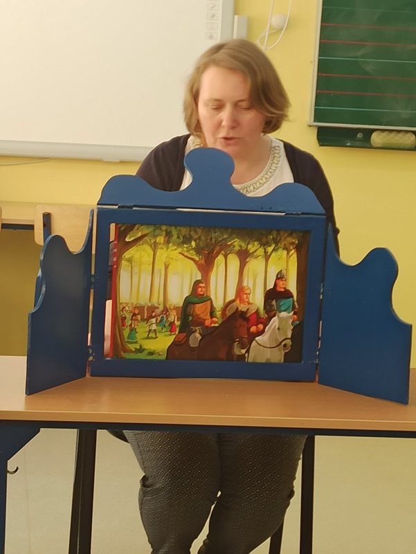 Bogato ilustrowane bajki niosą proste, lecz ważne przesłania, że warto być dobrym a nie należy być leniwym bo w życiu nic tą drogą się nie osiągnie. Z kolei uczniom klasy III przedstawiono „Legendę o Lechu, Czechu i Rusie”. Legenda wyjaśnia, w jaki sposób powstało Gniezno i polskie państwo, a także dlaczego godłem Polski jest biały orzeł. Teatrzyk kamishibai łączy magię obrazu i magię słowa. Jest świetną formą zabawy zabierając uczestników w podróż do krainy bajek i teatru.