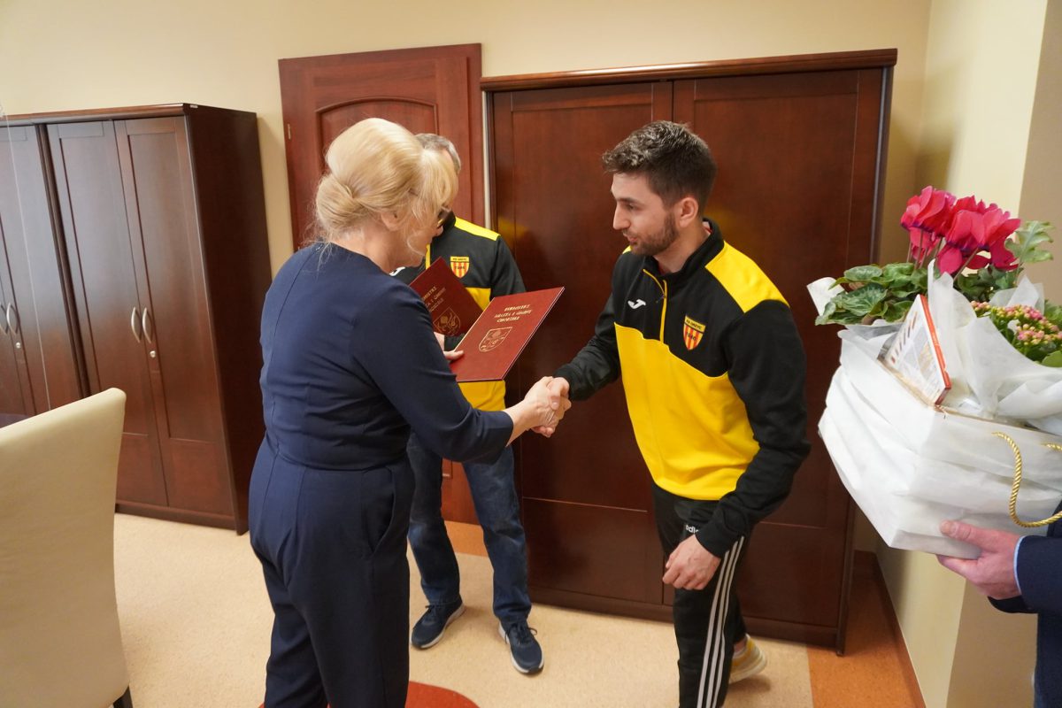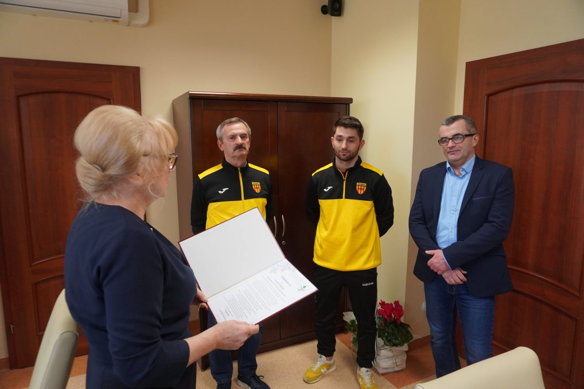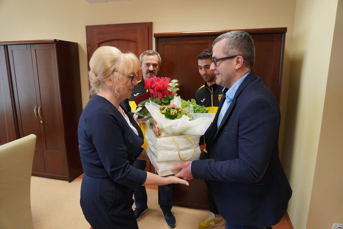 Przedstawiciele KS Orzyc Chorzele również podziękowali burmistrz Beacie Szczepankowskiej za dotychczasową, bardzo dobrą współpracę, wsparcie i zrozumienie potrzeb oraz wręczyli piękne kwiaty.