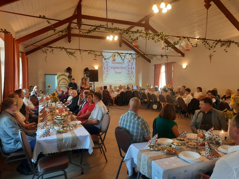 Ta wyjątkową uroczystość w tym roku odbyła się w zabytkowym budynku parafialnym w Zielonej  tzw. „Ludowcu” w siedzibie gospodarza imprezy tutejszego Koła Gospodyń Wiejskich. Do przygotowania uroczystości były zaangażowane pozostałe koła gminy Krasne tj. Koło Gospodyń Wiejskich w Nowym Żmijewie, Koło Gospodyń w Zalesiu i Koło Gospodyń Wiejskich w Krasnem.