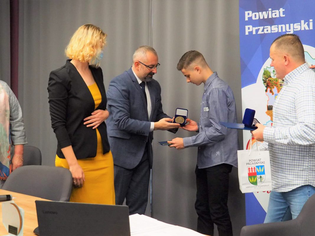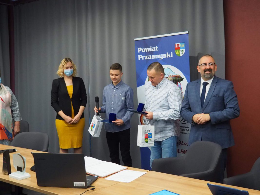 Podczas L Sesji Rady Powiatu Przasnyskiego Starosta Krzysztof Bieńkowski oraz Przewodnicząca Rady Powiatu Katarzyna Wróblewska wręczyli medale Gloria Prasnensis Terrae za szczególne zasługi dla Powiatu Przasnyskiego dla Jakuba Bońkowskiego oraz Cezarego Pykały.