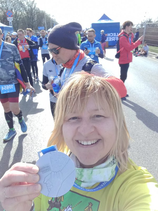 – Nastawiałam się na czas ok. 2:30:00. Pobiegłam dużo lepiej. Popłakałam się na mecie z emocji. Jestem pod ogromnym wrażeniem organizacji imprezy. Cudownie było obserwować morze ludzi robiących to samo co Ty. Zdawało się że cały świat biegnie. Doping kibiców był niesamowity: dzwonki, bębenki, trąbki, orkiestra, cheerleaderki, a nawet mini koncerty i ludzie z transparentami. Mimo, że po 15 km męczyła mnie kolka, nie poddałam się i biegłam do końca. Jestem z siebie mega dumna. Pokonałam kolejną barierę, która kiedyś wydawała mi się nie do przekroczenia. A skoro ja mogę, to Ty też – mówi Gosia Makowska.