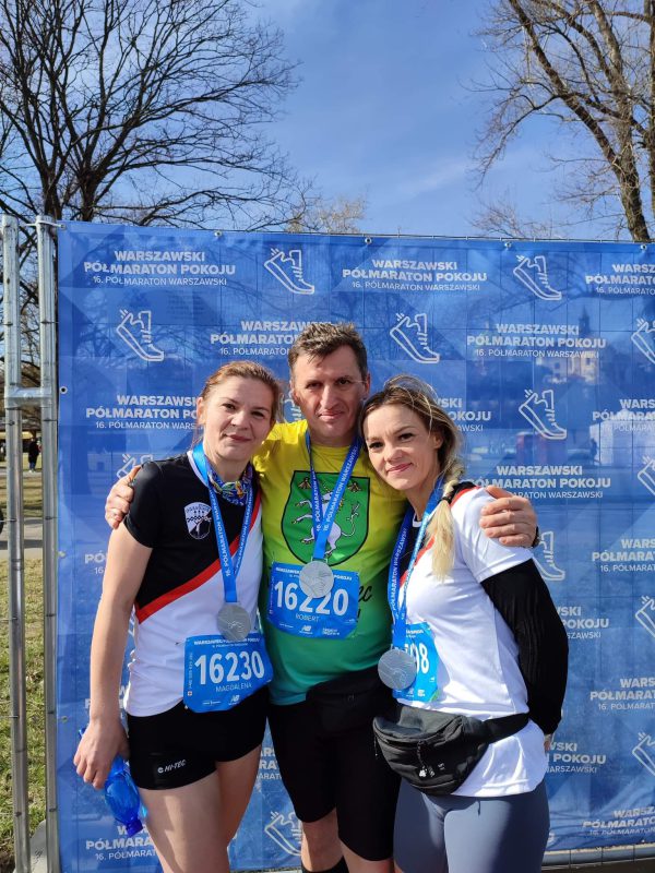 Trójka Jednorożców wystartowała o 9.00 na zawodach w stolicy. Nie straszna im była nocna zmiana godziny, lodowaty wiatr od Wisły i zaledwie 3 stopnie na plusie, gdy startowali. Strach się było rozebrać. Ale co zrobić, gdy w planie do przebiegnięcia jest 21,097 km. Za to słońce dopisało i momentami fajnie przygrzewało po trasie.