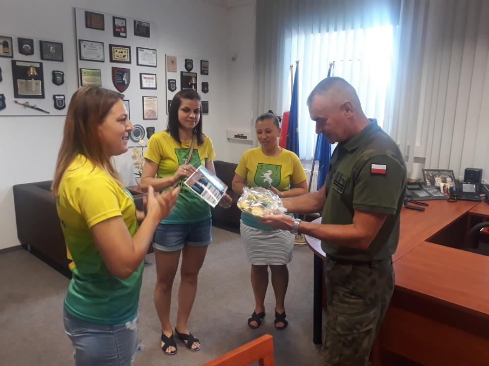 Wizyta była okazją do wręczenia własnoręcznie upieczonego słodkiego podziękowania dla Dowódcy Ośrodka pana płk dypl. Bogusława Postka, za okazane wsparcie w organizacji wydarzenia pn. „Pogoń za Jednorożcem”.