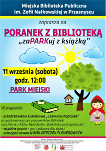Wakacje dobiegły końca. Jednak w bibliotece, nie jest to oznaka końca wydarzeń oraz atrakcji dla dzieci. Już 11 września o godzinie 12:00 zapraszamy na Poranek z Biblioteką! Tym razem spotkanie odbędzie się w Parku Miejskim.