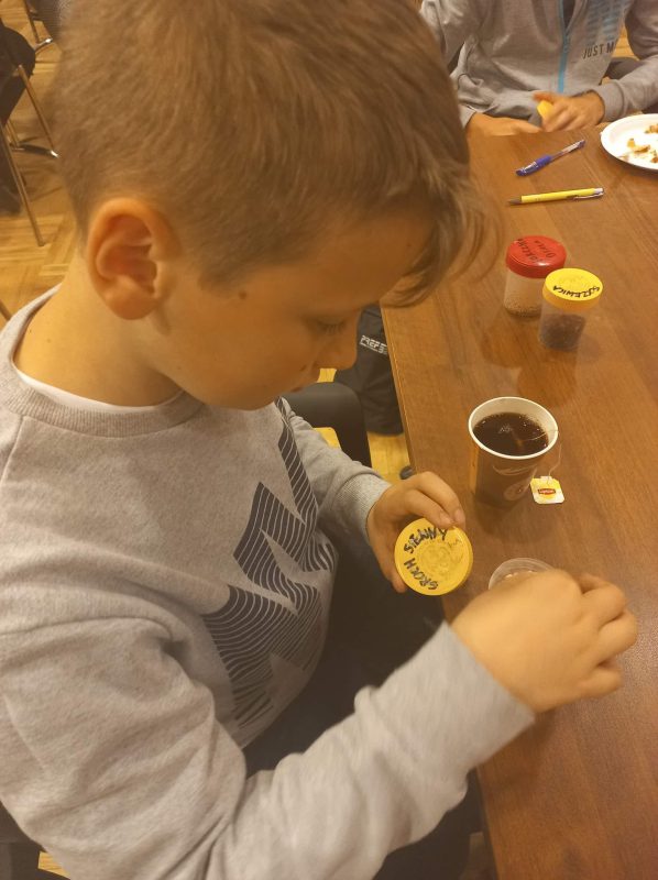 Uczniowie brali również udział w wykładzie o ekologicznym rolnictwie prowadzonym przez studentów SGGW. W ramach wykładu odbył się konkurs rozpoznawania roślin po nasionach i w tym konkursie najlepszy był również uczeń Szkoły Podstawowej w Lesznie Bartosz Suwiński.