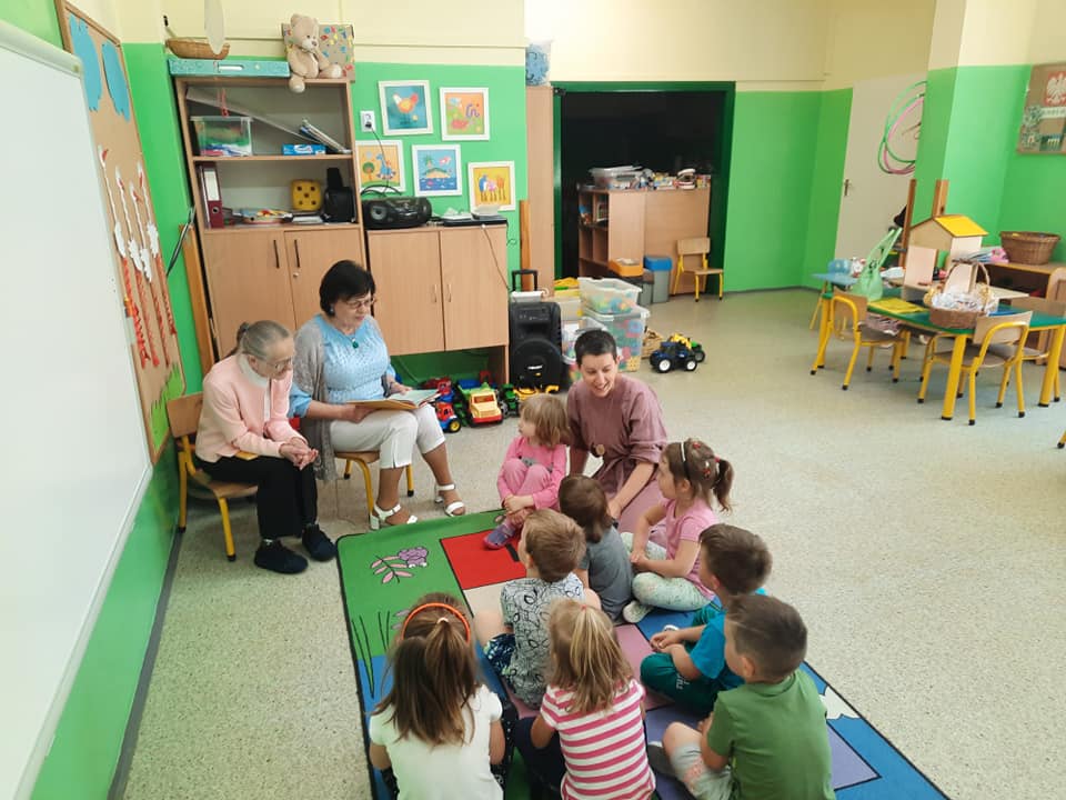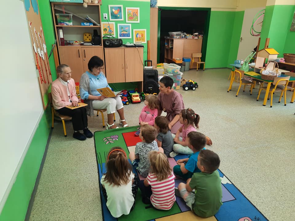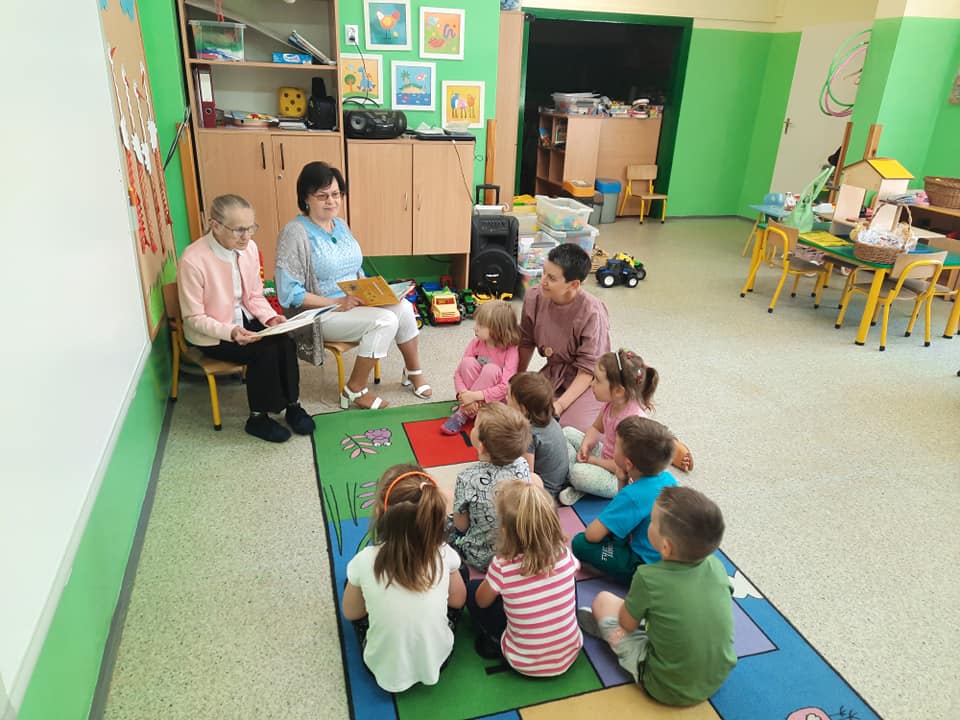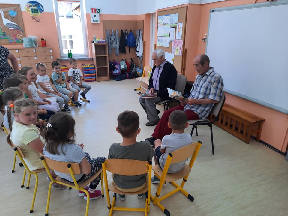 Seniorzy czytali bajki dla najmłodszych w Szkole Podstawowej w Bogatem.