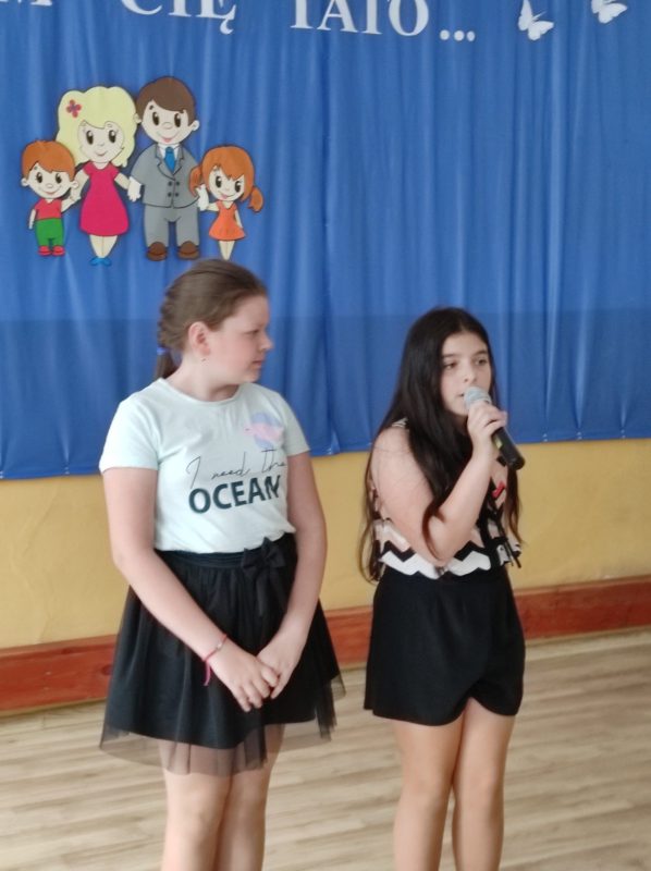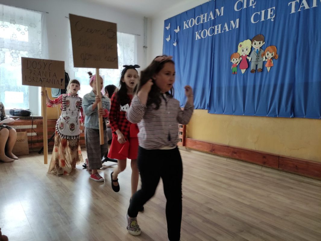 Dzieci z oddziału przedszkolnego pod kierownictwem pani Basi Piotrowskiej recytowały piękne wiersze, tańczyły i śpiewały piosenki o mamie i tacie. Uczniowie klasy pierwszej i drugiej pod opieką pani Jolanty Tynieckiej oraz pani Agnieszki Tańskiej przygotowali i odegrali dla Rodziców przedstawienie pt. ,,Sprawa dla reportera.’’ Podczas występu nasze aktorki wcieliły się w rolę mam strajkujących o zasłużony odpoczynek w Dniu Matki, zaś chłopcy zagrali tatusiów startujących w castingu na najlepszego tatę. W rolę prowadzącej program reporterki – Elżbiety Jaworowicz wcieliła się uczennica klasy drugiej. Było dużo śmiechu i ubaw po pachy. Na koniec pięknych i wzruszających życzeń uczniowie obdarowali swoich Kochanych Rodziców upominkami i wspólnie zaśpiewali gromkie ,, Sto lat’’ na cześć tak miłych gości. Po zakończeniu części artystycznej Pani Dyrektor zaprosiła wszystkich przybyłych Rodziców na kawę, herbatę i pyszne ciasto przygotowane przez Radę Pedagogiczną.