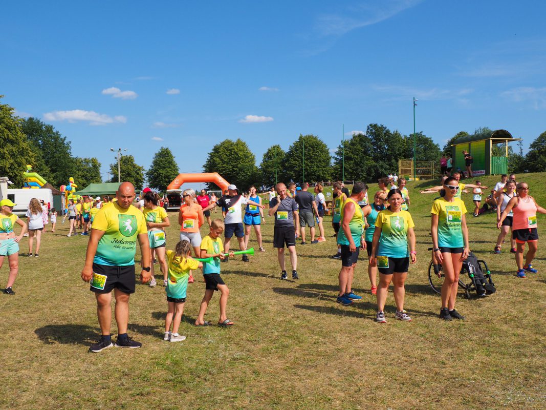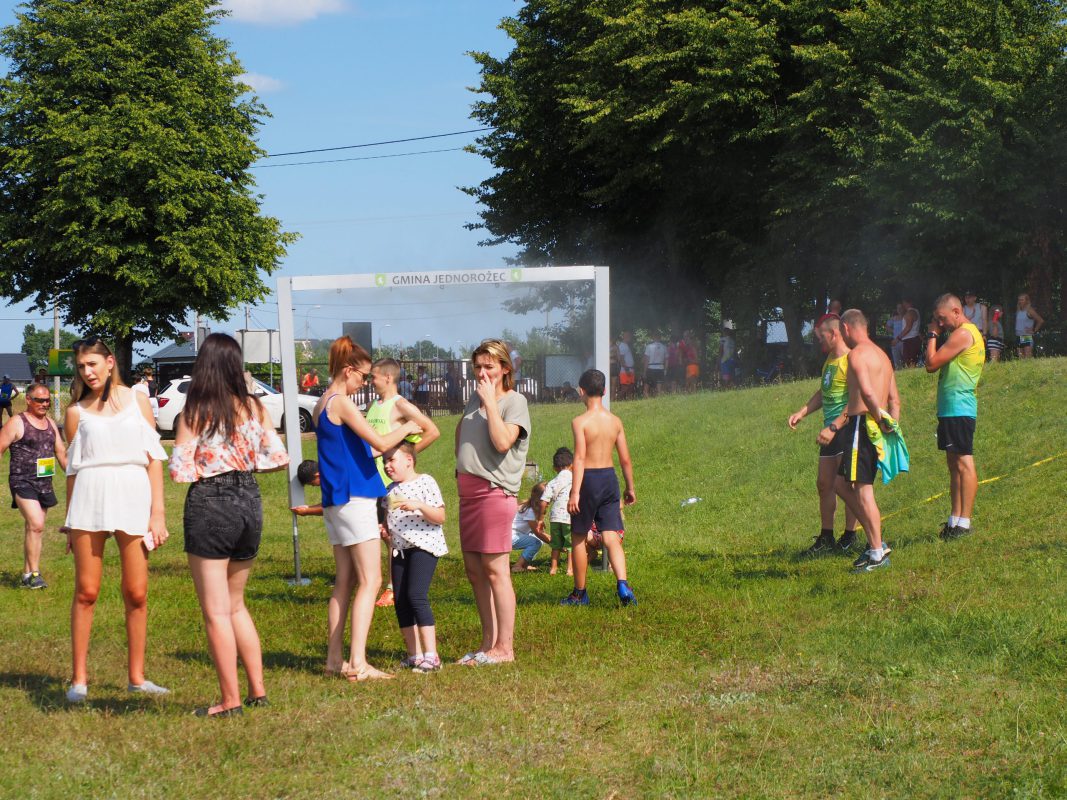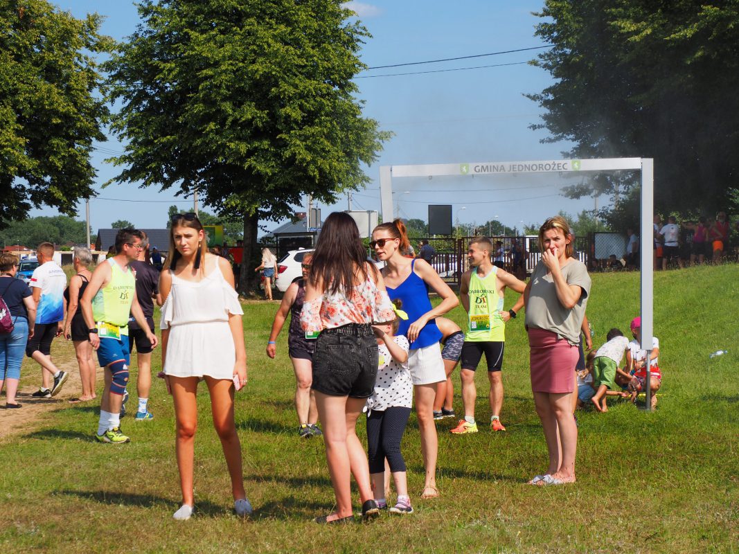 Atmosfera między biegami była iście piknikowa. Oprócz zawodników pojawiali się również kibicie i fani biegów. Bieg główny na dystansie 5 kilometrów rozpoczął się o godz. 15:20. Wystartował go wójt gminy Jednorożec – Krzysztof Iwulski.