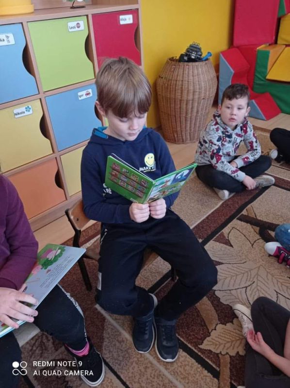 Wojciech Więcek czytał „Rozsądną wiewiórkę”, Oliwia Kacprzyk „Jeżynową przygodę”, natomiast Nadia Szlaga zapoznała najmłodszych z książką „Jaś i magiczna fasola”” Dzieci uwielbiają cotygodniowe czytanie.