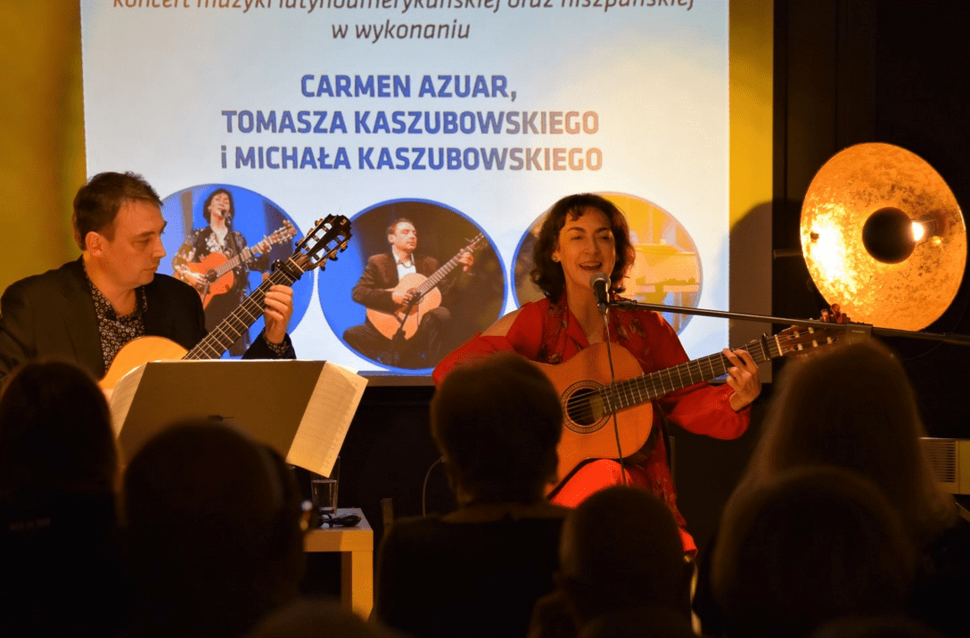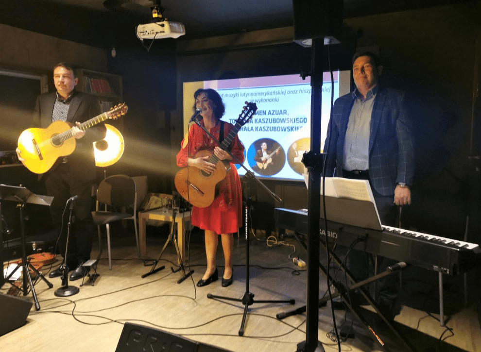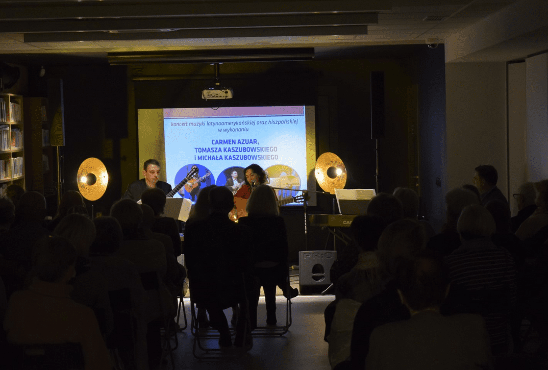 W sobotę 16 października w siedzibie MBP odbył się koncert muzyki latynoamerykańskiej i hiszpańskiej w wykonaniu Carmen Azuar, Tomasza Kaszubowskiego oraz Michała Kaszubowskiego.