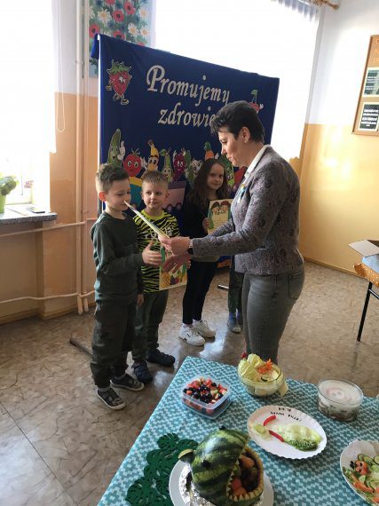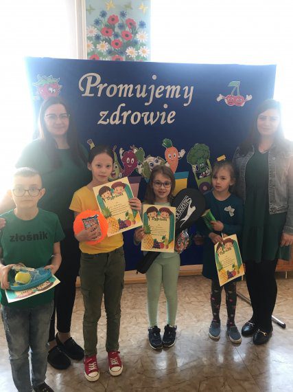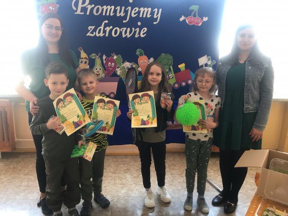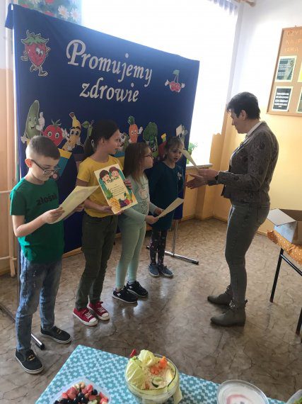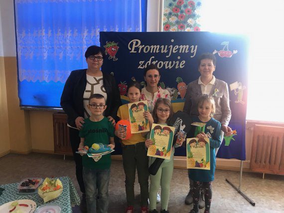 Po wielu dyskusjach i naradach Panie z Jury przyznały I, II, III miejsca oraz wyróżnienia. Zwycięzcy otrzymali dyplomy i nagrody, a wszyscy uczestnicy drobne upominki. Serdecznie dziękujemy wszystkim uczniom za udział w konkursie, a zwycięzcom jeszcze raz gratulujemy. Mamy nadzieję, że zasady zdrowego odżywiania i aktywny tryb życia na długo zagoszczą w domach wszystkich uczniów.