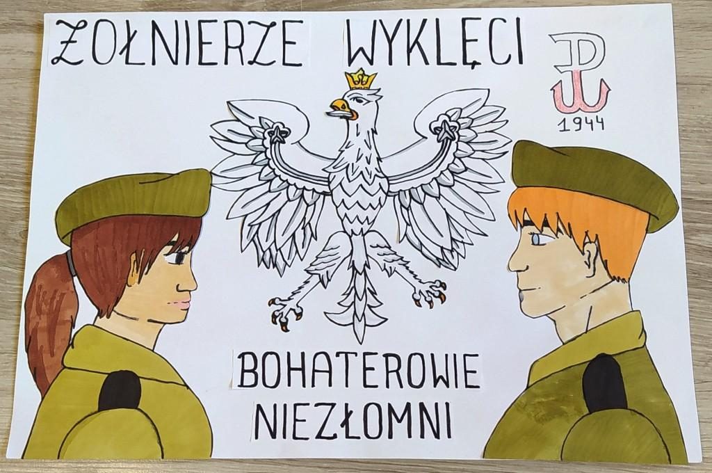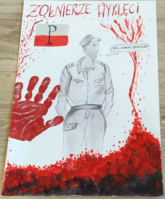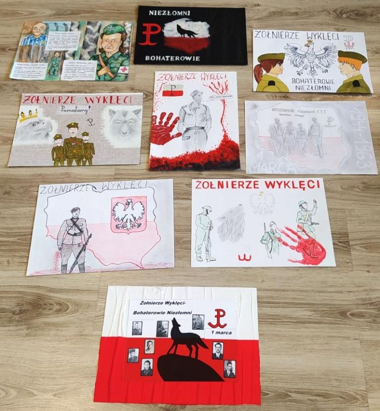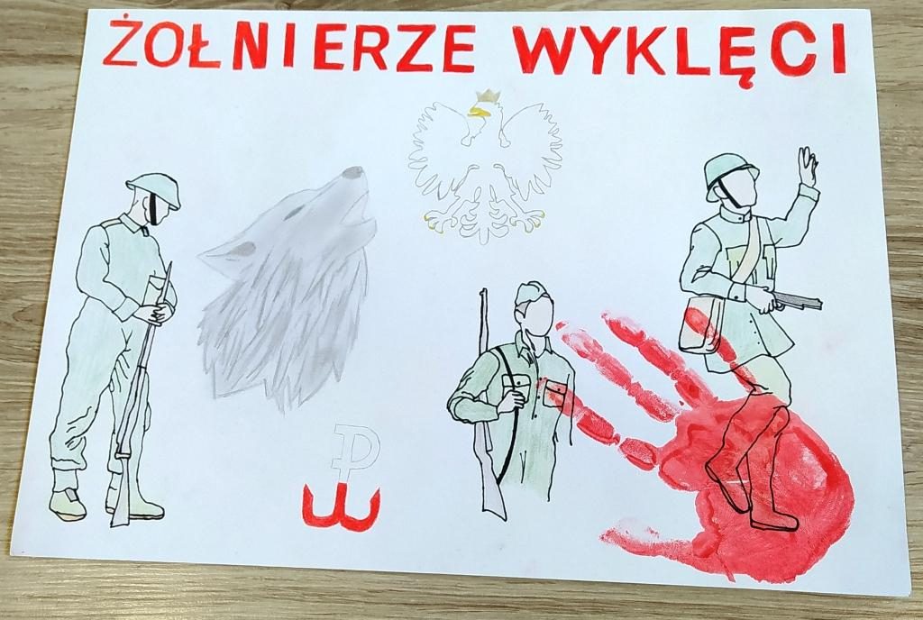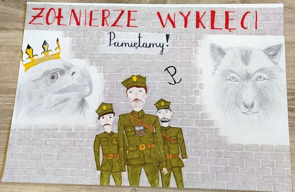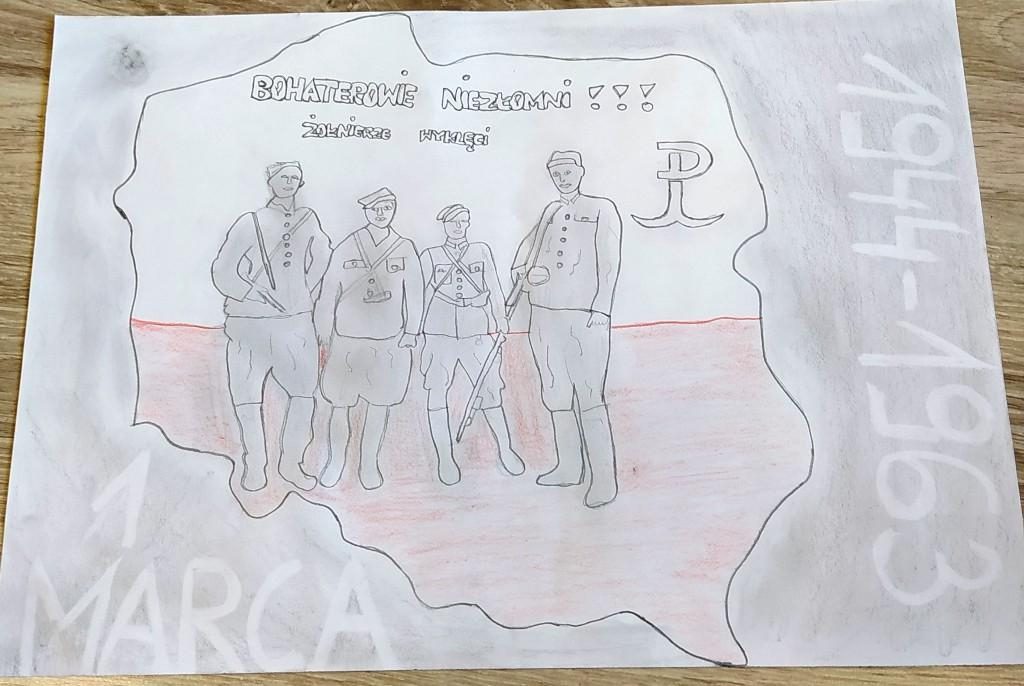 Uczniowie z naszej szkoły bardzo chętnie przystąpili do konkursu i przygotowali prace plastyczne. W swoich pracach wykazali się świetną znajomością tematu, który jest im bardzo dobrze znany, bo co roku 1 marca organizowany jest w naszej szkole „Dzień Żołnierzy Wyklętych”. Oprócz wiedzy uczniowie mieli możliwość zaprezentowania swoich talentów plastycznych. Wykazali się pomysłowością i kreatywnością. Pięknie wykonane prace zostały wysłane do fundacji i czekamy na rozstrzygnięcie konkursu, które ma nastąpić 30 kwietnia 2022r. Wszystkim naszym uczniom dziękujemy za zaangażowanie i wysiłek włożony w wykonane prace. Za wszystkich uczestników trzymamy kciuki i życzymy sukcesów.