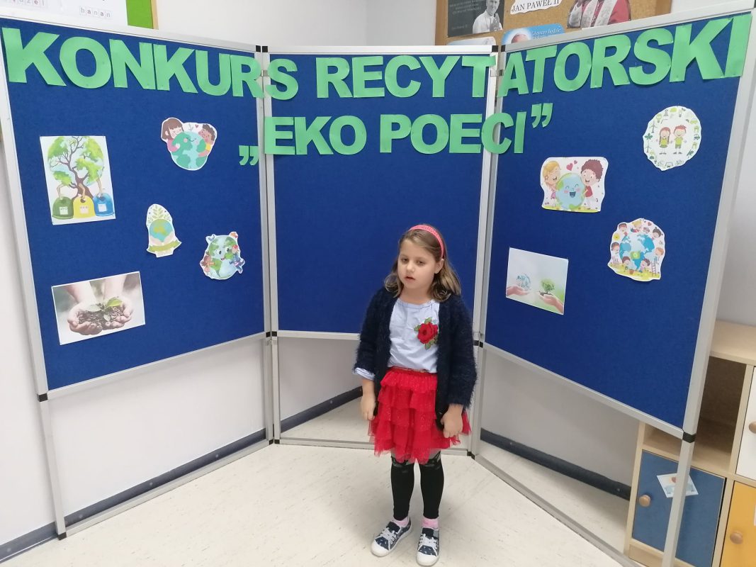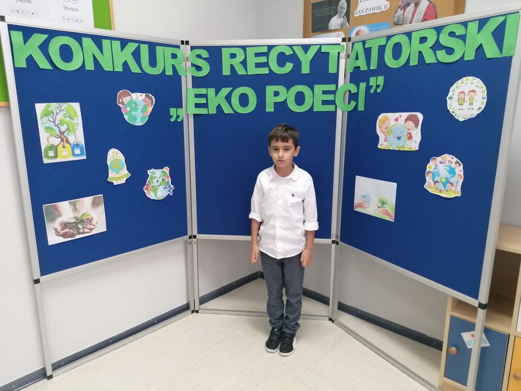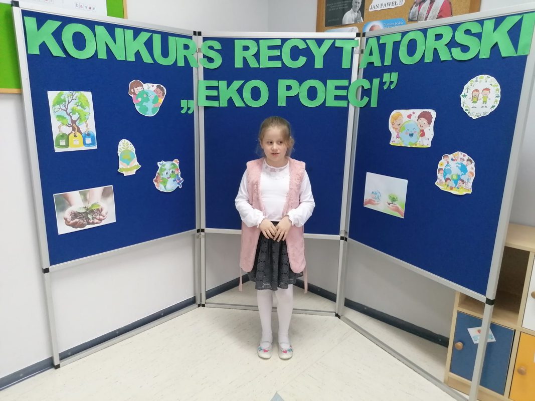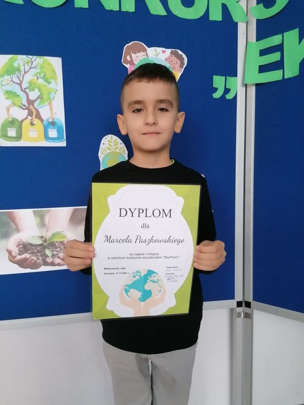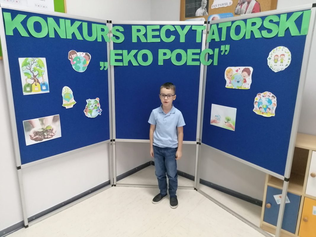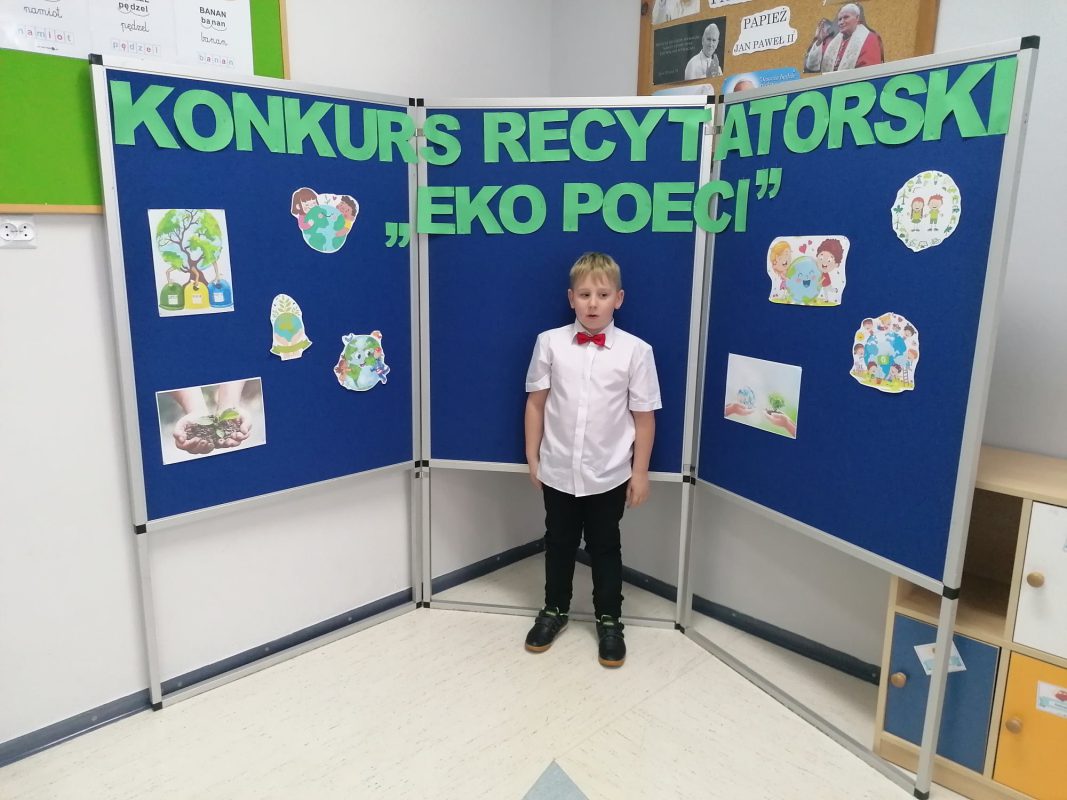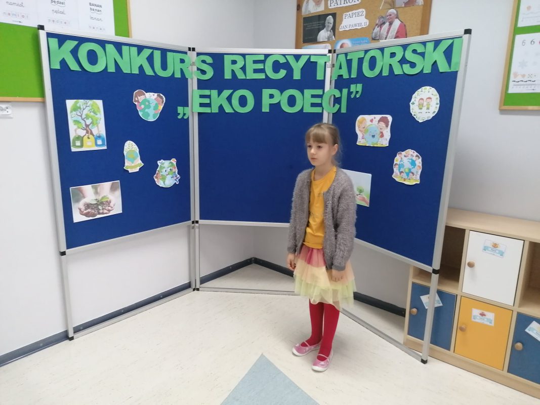 17 listopada 2021 r. w Publicznej Szkole Podstawowej nr 2 im. Papieża Jana Pawła II w Chorzelach odbył się szkolny Konkurs Recytatorski „EkoPoeci” w kategorii klas I.