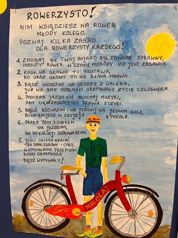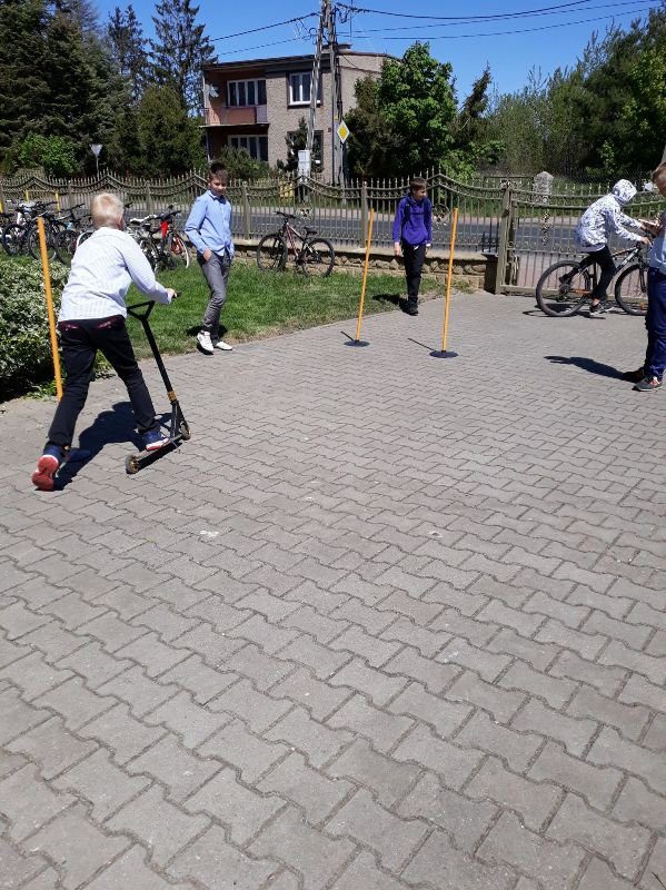 Uczniowie klas 4 – przygotowując się do egzaminu na kartę rowerową byli z wizytą w Powiatowym Miasteczku Ruchu Drogowego w Przasnyszu. Bardzo wielu uczniów naszej szkoły przyjeżdża do szkoły na rowerach – o czym świadczy przedszkolny parking. 17 V 2022 – odbyła się „Przerwa z zasadami” Rowerzyści zmierzyli się z torem przeszkód, doskonalili swoje umiejętności jazdy na rowerze.