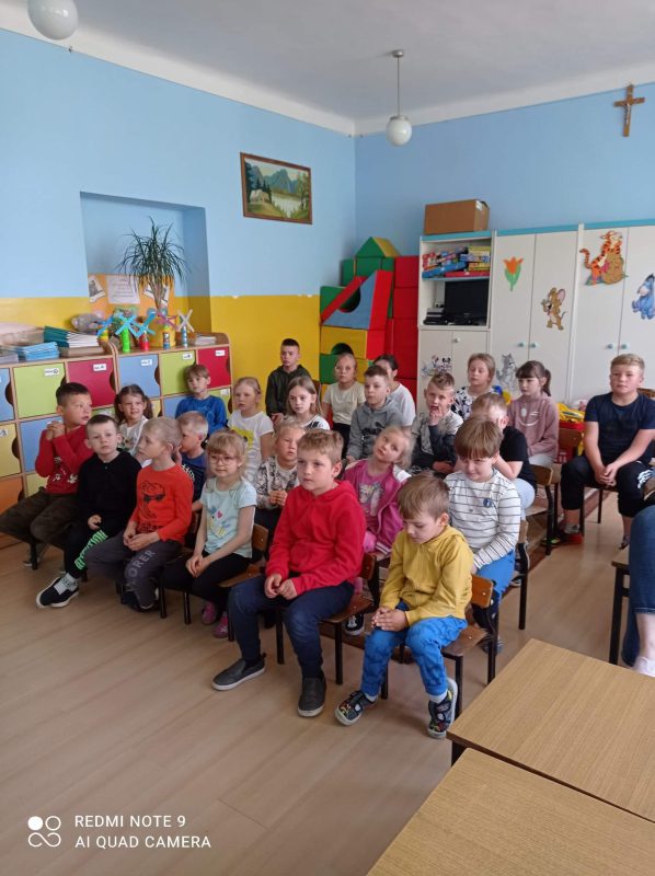 W czwartek, 19 maja Szkołę Podstawową w Pościeniu Wsi odwiedził dzielnicowy Pan Marcin Tański, aby porozmawiać z dziećmi o bezpieczeństwie. Najmłodsi uczniowie poznali przygody policjanta misia Poliego, który przedstawiał różne niebezpieczne sytuacje i sposoby ich rozwiązania.