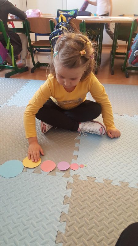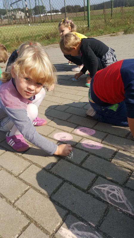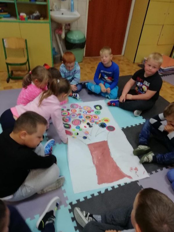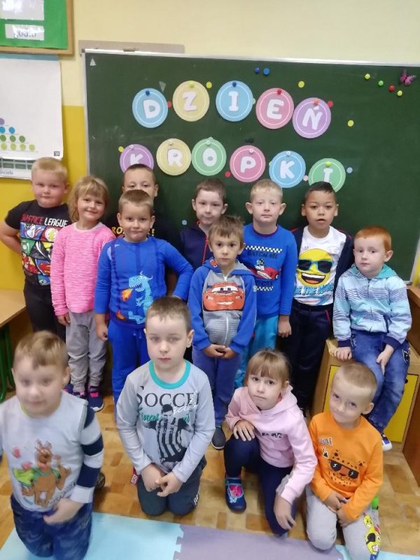 W tym dniu dzieci najpierw zapoznały się z historią Vashti i obejrzały krótki filmik z tytułową „Kropką”. Następnie dzieci rozmawiały o problemie dziewczynki, emocjach jakie jej towarzyszyły. Potem każdy miał okazję opowiedzieć o swoich talentach, dzieci przekonały się, że większość posiada różne umiejętności i każde są tak samo ważne. Kolejnym punktem tego dnia było uczestnictwo w wielu zabawach z kropką – ruchowe, plastyczne, matematyczne. Powstała galeria wyjątkowych kropkowych dzieł w salach przedszkolnych. Dzieci chętnie i aktywnie uczestniczyły w zajęciach.