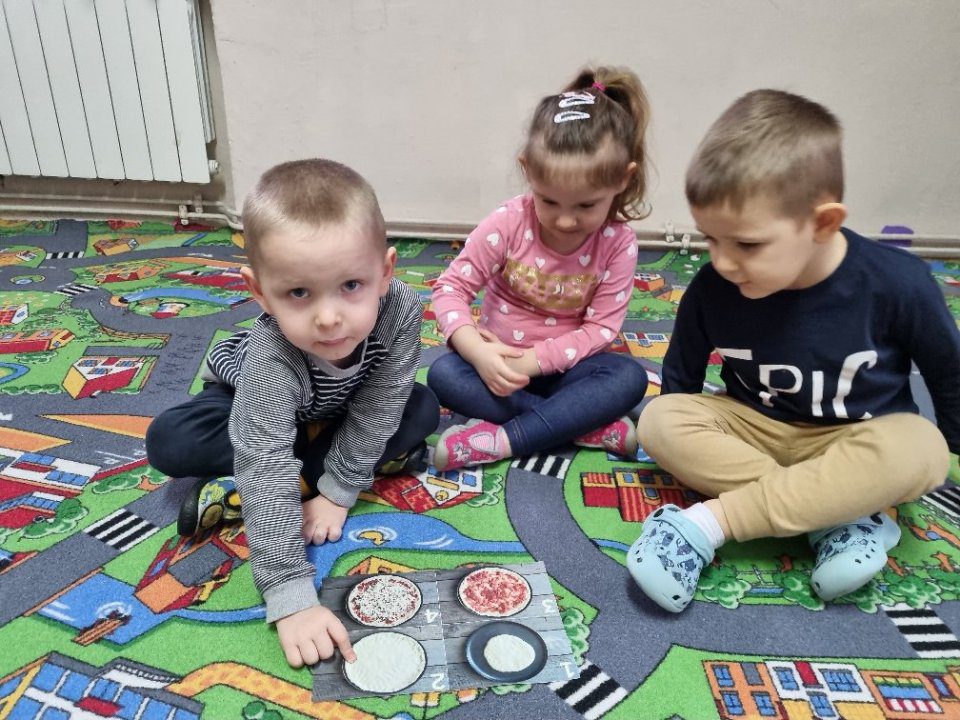 Podczas zajęć przedszkolaki z Rostkowa poznały krótką historię pizzy, dowiedziały się, z którego kraju pochodzi oraz z jakich składników można ją zrobić.