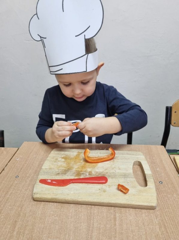 Była to ogromna frajda dla dzieci, bo każde miało do wykonania określone zadanie. Pod koniec zajęć mali kucharze doczekali się efektów swojej pracy. Było fantastycznie i smacznie.